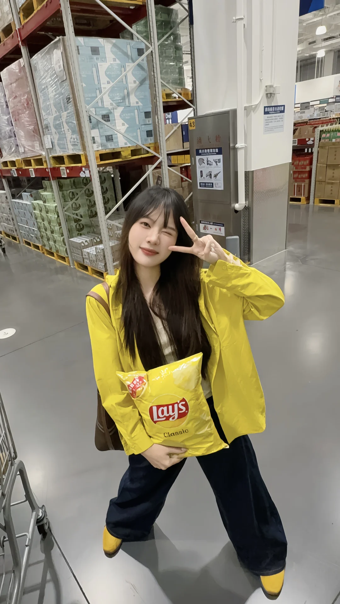 分享一下ootd🫰🏻 太好笑了 出门逛山姆穿得和乐事原味一个颜色 果然我是原味党(半个黄瓜党🫰🏻) 但是这一大袋要吃多久啊啊啊?! 有没有觉得这次照片很清楚!! 用的⭐图闪光灯 程度调到20%左右 不会失真 再p一下脸 用面部丰盈➕匀肤基本上就很自然了 然后叠加滤镜 质感-原生25% 会有一种清透的奶油感~ 最后用wink画质修复一下!! (不要用⭐图的画质修复 不好用太假了)