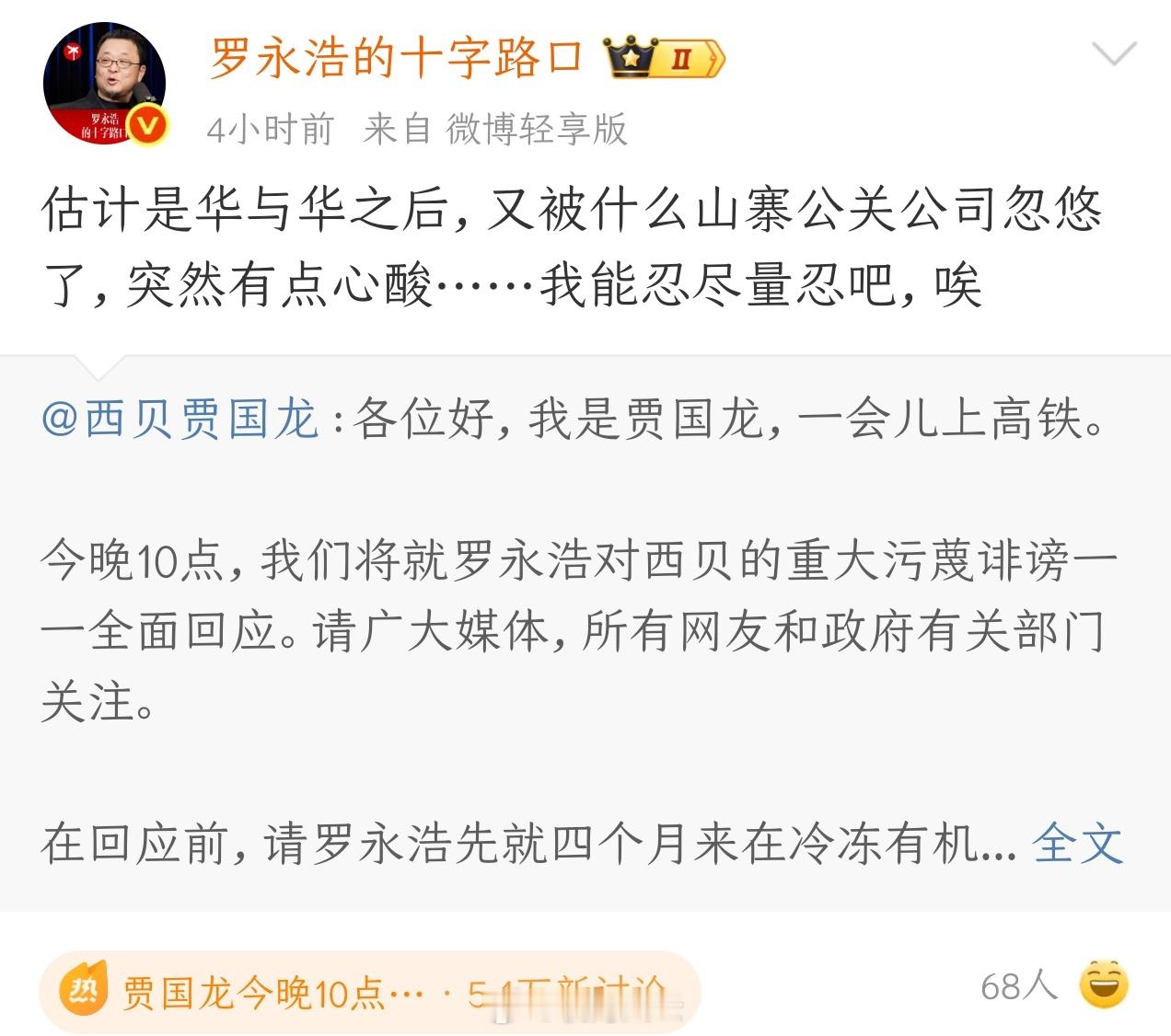 贾国龙让罗永浩道歉赔偿贾国龙让罗永浩千万别忍 好家伙!罗永浩、贾国龙双双被禁言!