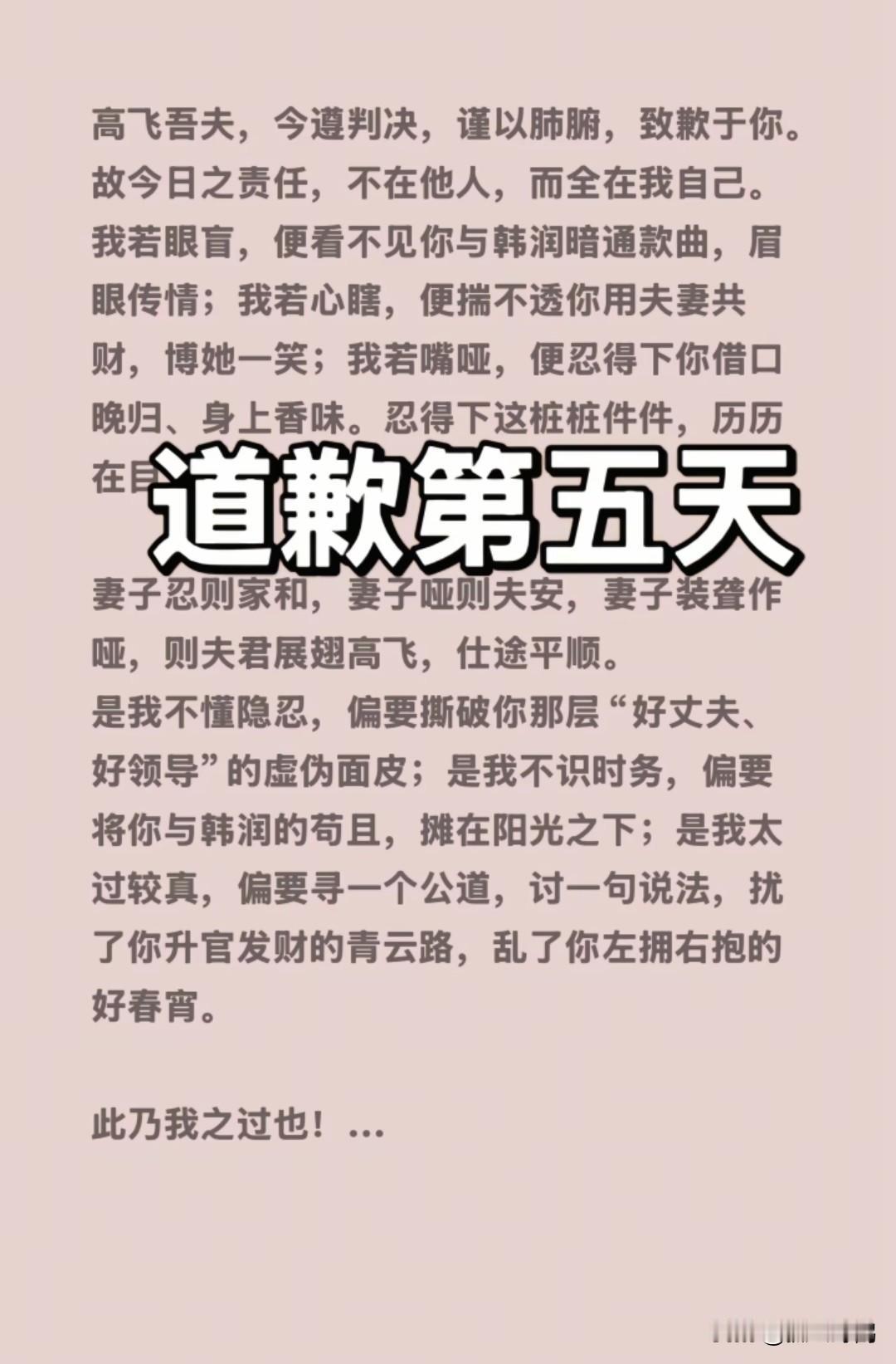 笑死了,牛女士道歉才第四天,出轨男女就受不了了,真是全网社死! 1月16日,牛女士的第五天道歉视频刚发出没多久就被限制了,因此大家都看不到,随后牛女士开直播,话还没有说几句,结果直播间又被封了。 最后,牛女士只能发文言文道歉。 由此可见,出轨男以及3+1急了,再这样任由牛女士爆料下去,估计俩人工作都难保。因为有人去其单位门口闹事了。 更令人寒心的是孩子的爷奶处理方式,为了儿子连孙女都不要了。 给孙女转账100元后就将孙女联系方式删除。小女孩看到后非常的难过。 不得不说不是一家人,不进一家门,高某一家人都是这么坏且没良心。 而牛女士也因祸得福,粉丝从几千涨到了49万,开播带货也赚不少钱。 有网友说: “才第五天干成文言文了,笑死了!” 也有网友说: “ 我觉得你的道歉还不够诚恳。你应该在他单位拉起横幅,来道歉。”