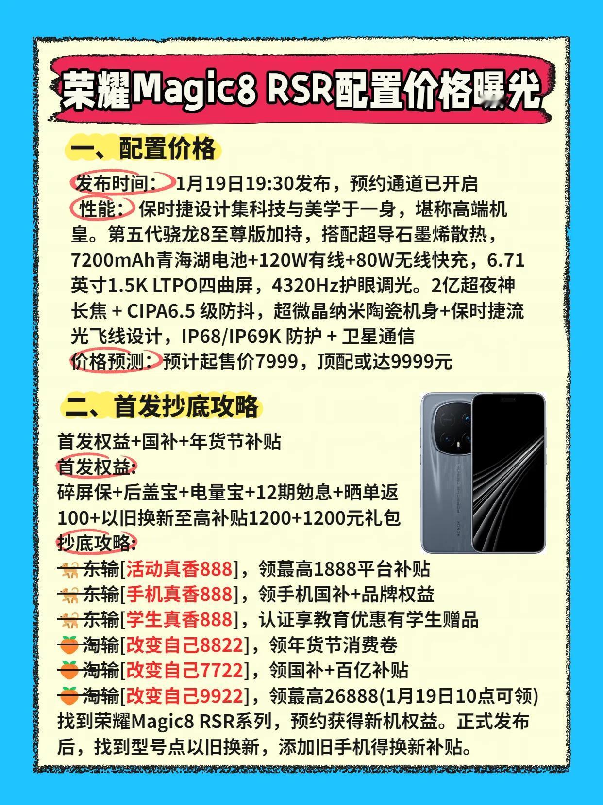 荣耀 Magic8 RSR 配置与首发价全面曝光!别急下单——首发权益可叠国补、年货节补贴、教育优惠,一篇超详细省钱攻略带你榨干每一分福利。
