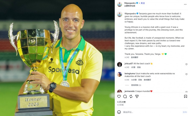 该博主写道:“葡萄牙教练菲利佩·佩德罗(FilipePedro)极大可能前往北京国安,担任蒙哥马利的助理教练。此前该教练是纳米比亚非洲年轻人体育会俱乐部的教练,俱乐部已与之告别。”