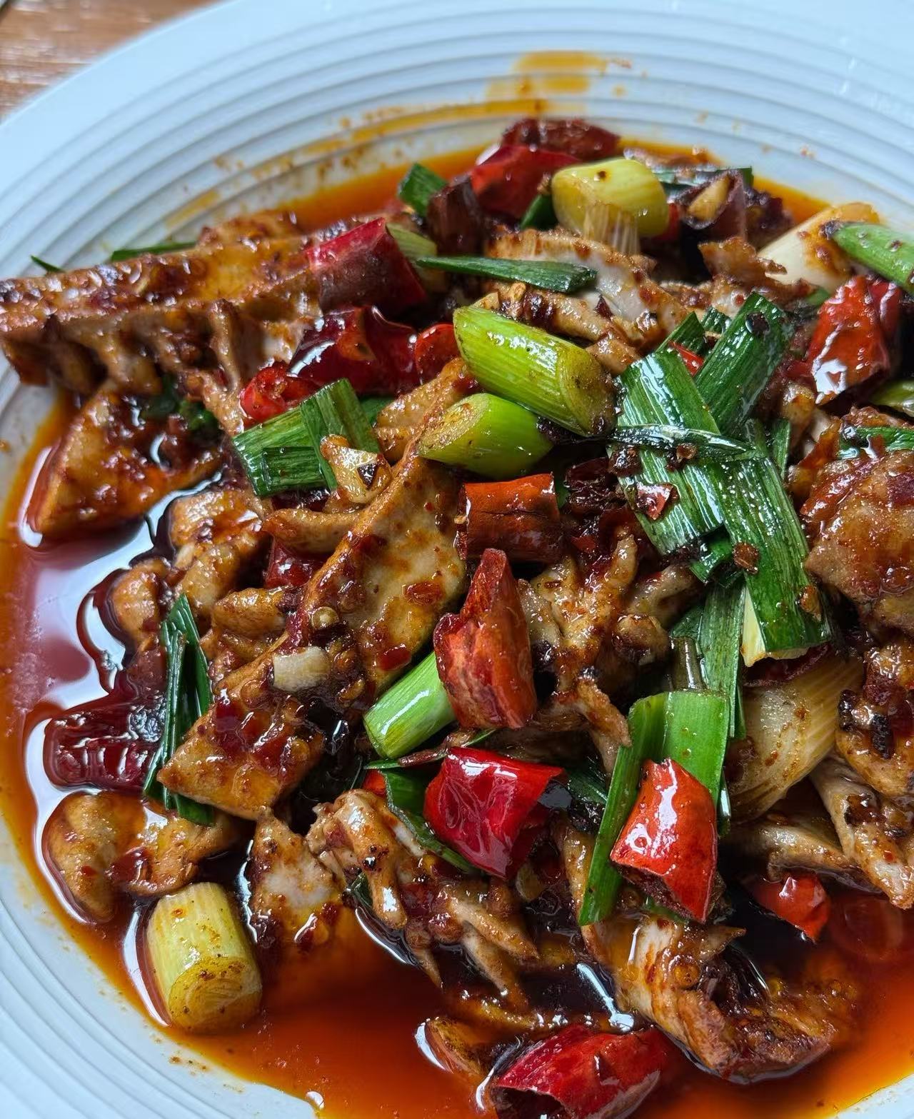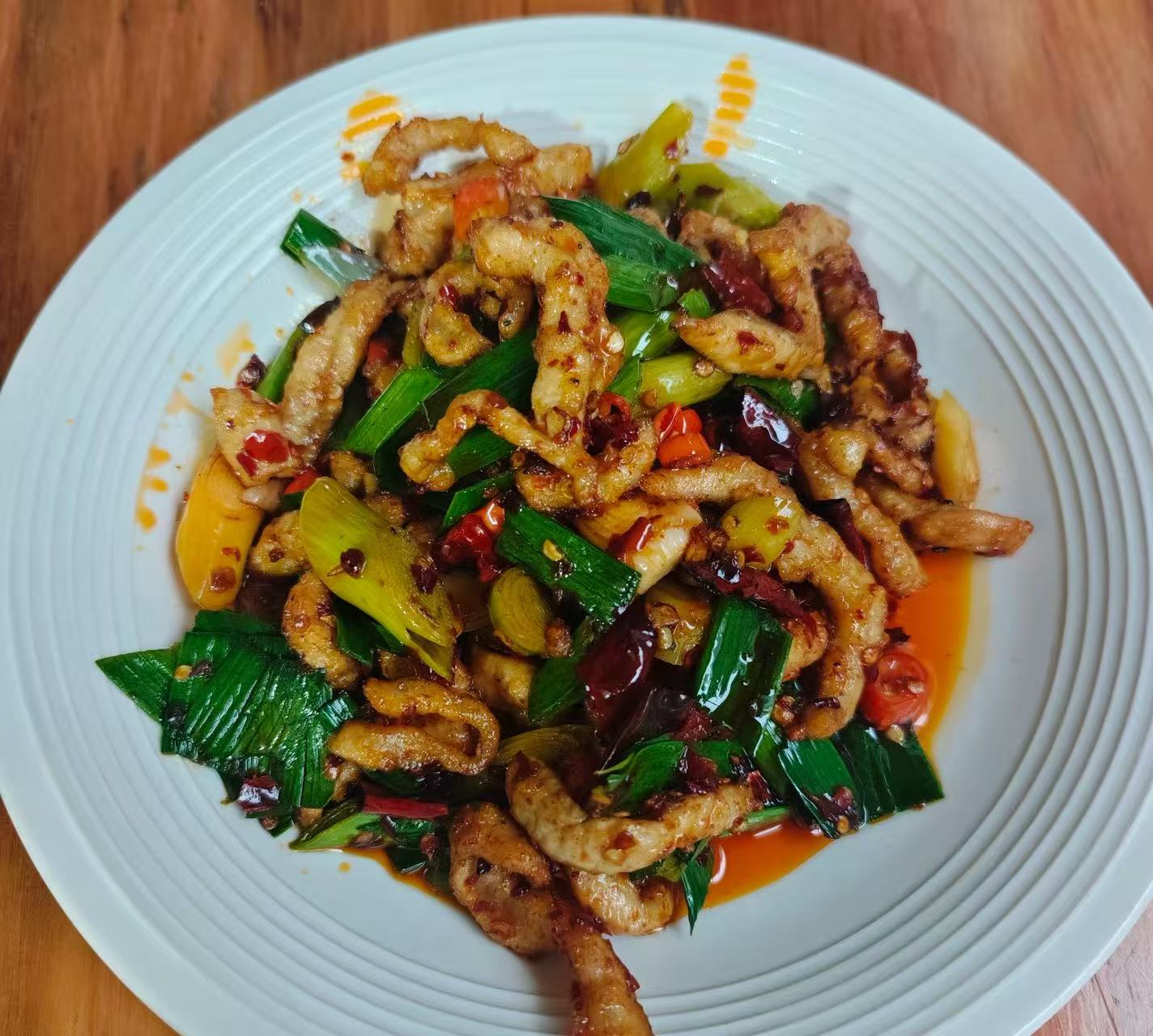 4️⃣.宫保肥肠,肥肠酱香浓郁,糍粑辣椒去腥味,口感弹牙带糯。