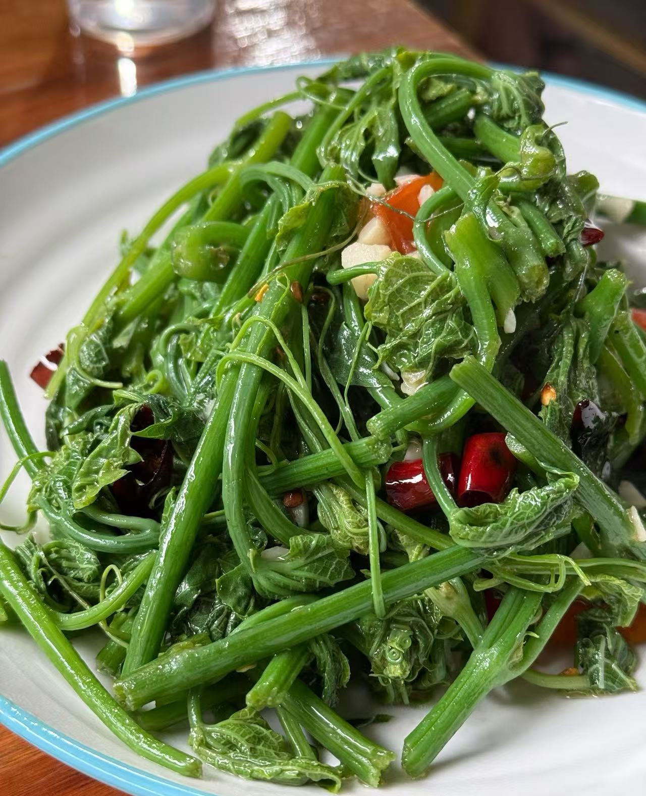 5️⃣.佛手瓜苗/芥兰苗、宫保肉条、炖肥肠等都是特色菜。
