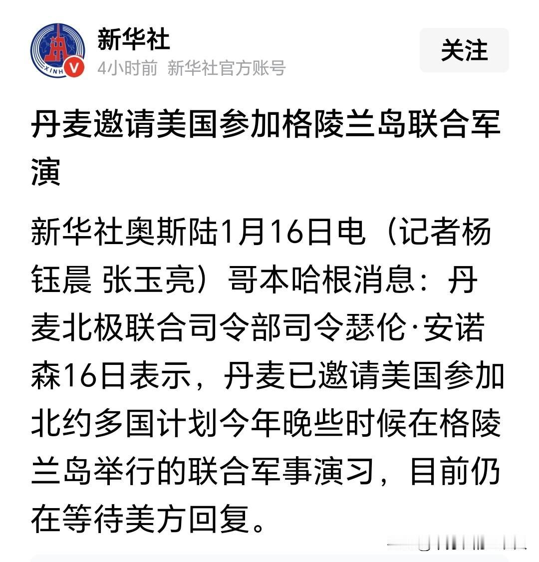 邀请美国参加格林兰岛联合军演?若不是新华街报道,我真会以为这是恶搞的假消息。 不得不说,丹麦的思维方式着实奇特,他们在格林兰岛举行军演,目的究竟是什么? 按常理,不应该是防范美国抢夺格林兰岛吗? 如今却邀请美国参加,这是何意?莫非就是传说中的“打不过就加入”? 果真,这些欧洲小国的领导人着实有一套,连投降都能搞得如此别具一格!