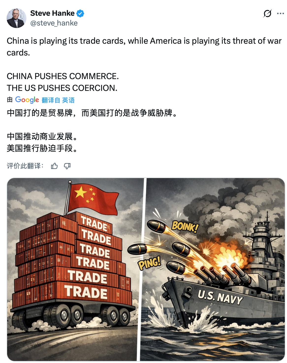 同为五常国家,中美完全不一样。 中国坚持走和平发展道路,通过贸易促进合作; 而美国则优先考虑自身的战略考量。 国际社会期望所有国家共同维护多边贸易体系,并推动实现包容性的共赢局面。 一个贸易,一个战争,到底谁才是世界最大的威胁,已经一目了然。