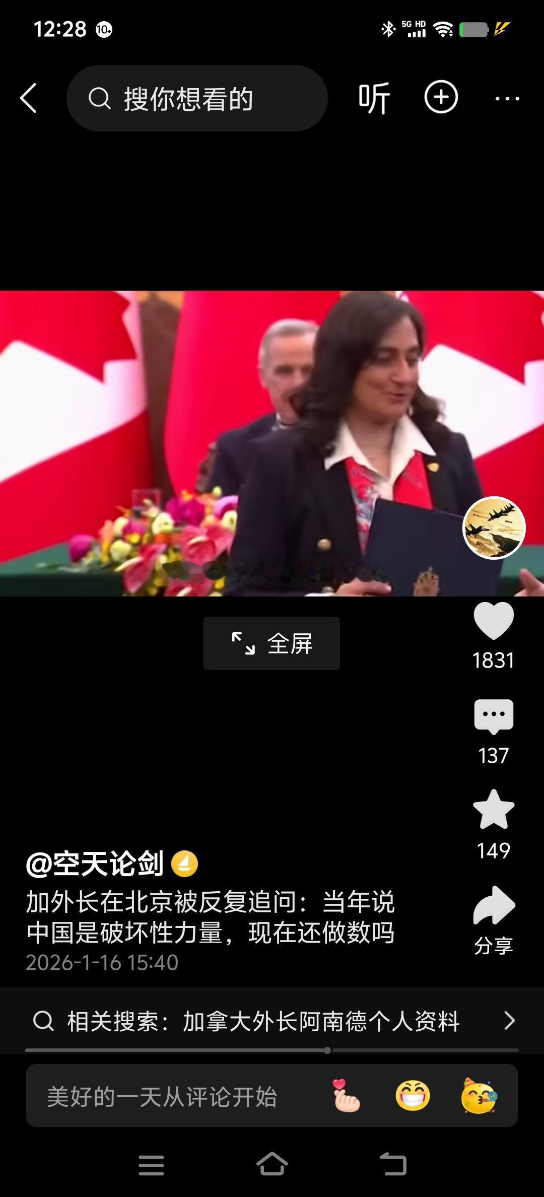 加拿大这次来中国,转弯之快,他们感不感觉很尴尬 八年以前那个小特鲁多他们跟随着美国搞印太战略,打压中国,几乎所以有事儿,无论有事没事儿就讽刺就打击,就把中国带上,仿佛那就是政治正确。这次加拿大外长在北京被反复追问一个问题:你们当年说中国是破坏性力量,现在这话还做数吗? 他尴尬的只能回答现在的政策,现在的政策就是趋利呗,当美帝国主义把他这个小老弟都不当的朋友了,把小跟班就不当做自己人了,他才想起了伟大的中国了,颠儿颠儿的就主动来了。加拿大总理卡尼带着外交等多部门高官访华的日子,这也是加拿大总理八年来首次踏上中国土地。八年时间多长啊?可以抗一个日本,可以打击两个德国法西斯。 加拿大卡尼他紧赶慢赶的来了。爱尔兰马丁、韩国李在明都已经来了,说阿根廷米莱直打直上也要来,这一波在美国不按常理出牌,违反国际法的情况下,都吓呆了,全世界各国都排队来中国,是不是有一种万国来朝的感觉? 我们曾经记得2018年年底吧, 加拿大在美国的指使下扣押了孟晚舟女士,再被关押了1030天以后,才得以除掉电子脚铐,才得以以中国红的骄傲回归祖国。那是怎样的痛啊?加拿大在孟晚舟事件上对中国的伤害,反面作用几乎是把白求恩医生那些好感优势啊给抹平了。 这次美国搞了委内瑞拉,抓了马杜罗夫妇,又要占领格陵兰岛了,美国本土、阿拉斯加、格陵兰岛三地,正好保卫着冰雪覆盖的加拿大,加上美国在关税问题上丝毫不给加拿大这个小弟任何优势,为美国马首实战的加拿大有点心凉了。 他想起了遥远的亚洲还有一个伟大的中国,比较正直,比较讲正义,块头还大,做买卖搞贸易,讲信誉。中国是加拿大的第二大贸易伙伴,同时也是加拿大第二大进口来源地和第二大出口市场,均仅次于美国。所以,当美国千方百计的在前后左右刮油的时候,加拿大应该开辟新的市场,因为只有和中国的市场才有无限潜力,才有更大的利益可以挖掘。 中国的商品从高科技到日用生活到加拿大,加拿大的粮食能源等也可以到中国,双向合作有着广阔的前景,加拿大的转弯儿正是基于目前的利益所致。跟着美国过教训深刻,继续跟着美国,可能三天饿九顿,谋一条新的出路是最正确的。 资本主义国家不是铁板一块,只要多少撬动撬动他们之间的矛盾可以被我们所利用。加拿大多中国态度转弯儿之快,他连自己都感觉不适应,他们不会忘了自己在孟晚舟事件中的恶吧。所以再被“你们当年说中国是破坏性力量,现在这话还做数吗”的问题时,加拿大的外长根本不会就这个问题回答话题的本身,只会说中加友好,合作前景无限。