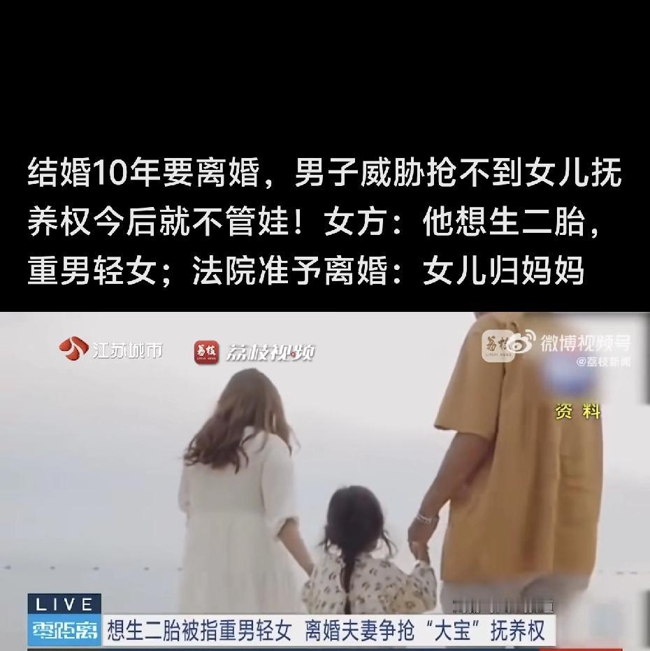 江苏一对夫妻结婚10年要离婚,男子威胁抢不到女儿抚养权今后就不管娃!女方:他想生二胎,重男轻女;法院准予离婚:女儿归妈妈,爸爸要给抚养费。 /江苏这对结婚十年的夫妻,妻子王女士提离婚,铁了心要带走8岁的女儿。丈夫张先生也同意离,但死活不肯放手女儿,俩人争得不可开交。 法庭上,王女士哭诉,说张先生脾气爆,动不动就发火,还有家暴行为。她最受不了的是,丈夫骨子里重男轻女,一心只想生个儿子。她觉得女儿跟着这样的爸爸,心理肯定得出问题,以后也不会有好日子过。 张先生一听就急了,当场反驳。他说自己就是想再要个孩子,凑个“好”字,根本不是嫌弃女儿。反过来,他指责王女士对女儿管得太死,教育方式太严苛,把孩子压得透不过气。他甚至撂下狠话:如果不让他养女儿,以后他就真不管了,抚养费也别想。 法官听完,没急着判谁对谁错,倒是先把俩人一起教育了一顿。法官说,你们俩这观念都有问题!一个把“生儿子”挂嘴上,一个用“不管了”来威胁,这哪是为孩子好?这分明是把孩子当筹码,在互相伤害。 开庭前,法官特地提醒他们,就算离了婚,也是孩子的父母,在生二胎、教育孩子这些大事上,必须好好沟通,尽到父母的责任,这对夫妻听完也都同意了。 最后,法院判了离婚,女儿跟了妈妈王女士,张先生按时付抚养费。判决下来,俩人都没再闹,接受了这个结果。 我觉得其实最可怜的,还是夹在中间的孩子。 你说张先生,那句“不让我养,以后我就不管了”,听着真让人心寒。养孩子难道是赌气吗?是拿来要挟对方的工具吗? 不过,王女士说丈夫家暴、重男轻女,如果是真的,那女儿跟着爸爸,风险也确实大。但反过来,如果妈妈的教育真是只有“严苛”没有温暖,孩子也难受。 法官那句话说的没错:俩人都有问题。一个可能用“传统观念”伤了孩子的心,一个可能用“绝对控制”折了孩子的翅膀。他们吵来吵去,好像都在争“我对你错”,但恰恰忘了问一句:孩子到底需要什么?你们觉得呢?