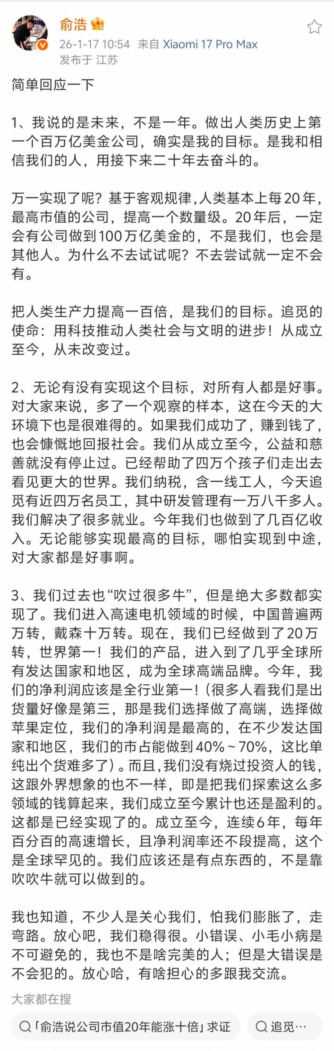 追觅这样的企业应该多鼓励。看看它的战绩:一:追觅已经帮助了四万个孩子们走出去看见更大的世界。今天追觅有近四万名员工,其中研发管理有一万八千多人。我们解决了很多就业。二:我们的产品,进入到了几乎全球所有发达国家和地区,成为全球高端品牌。今年,我们的净利润应该是全行业第一!三:在不少发达国家和地区,我们的市占能做到40%~70%。希望追觅把吹过的牛都实现!