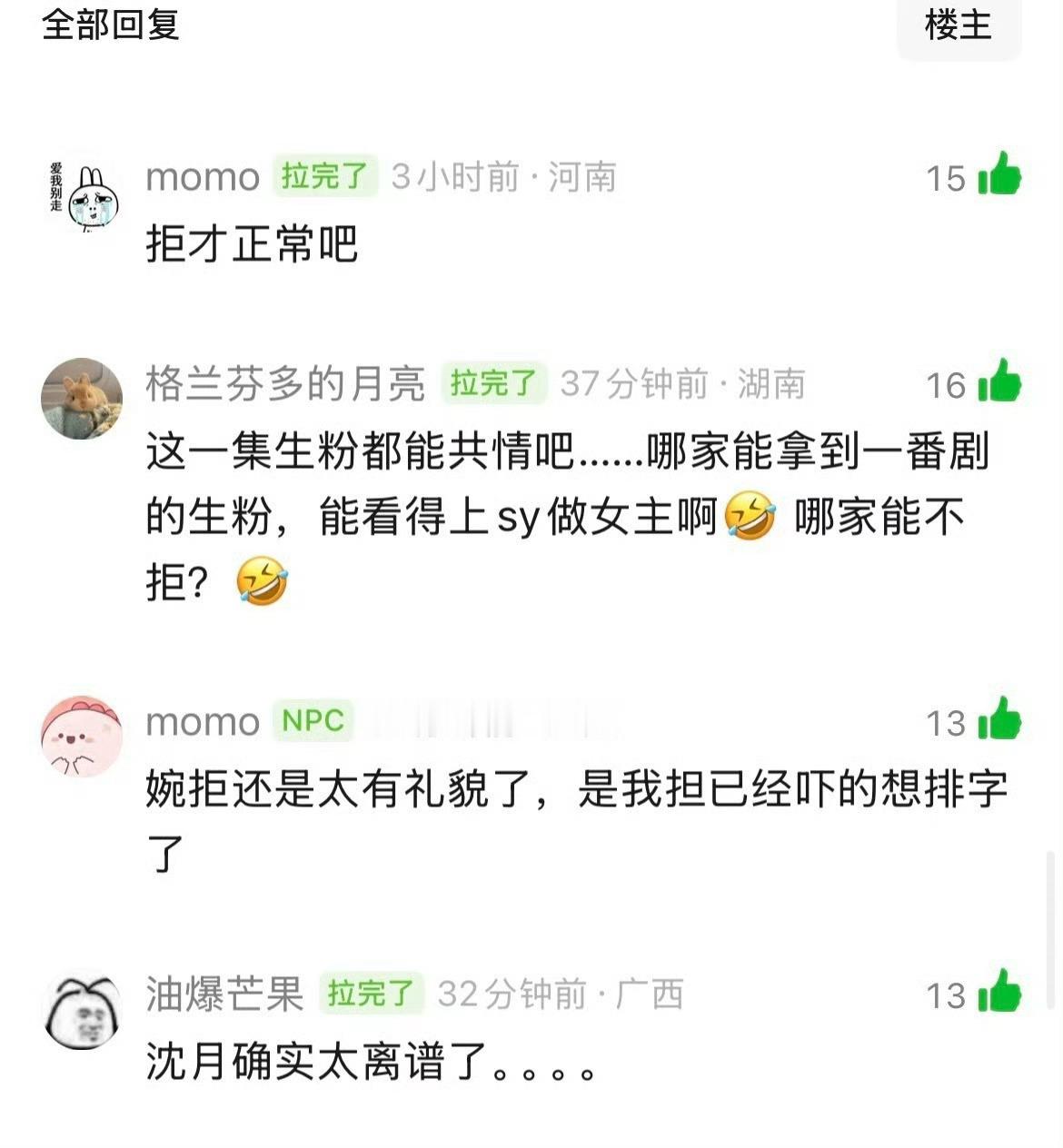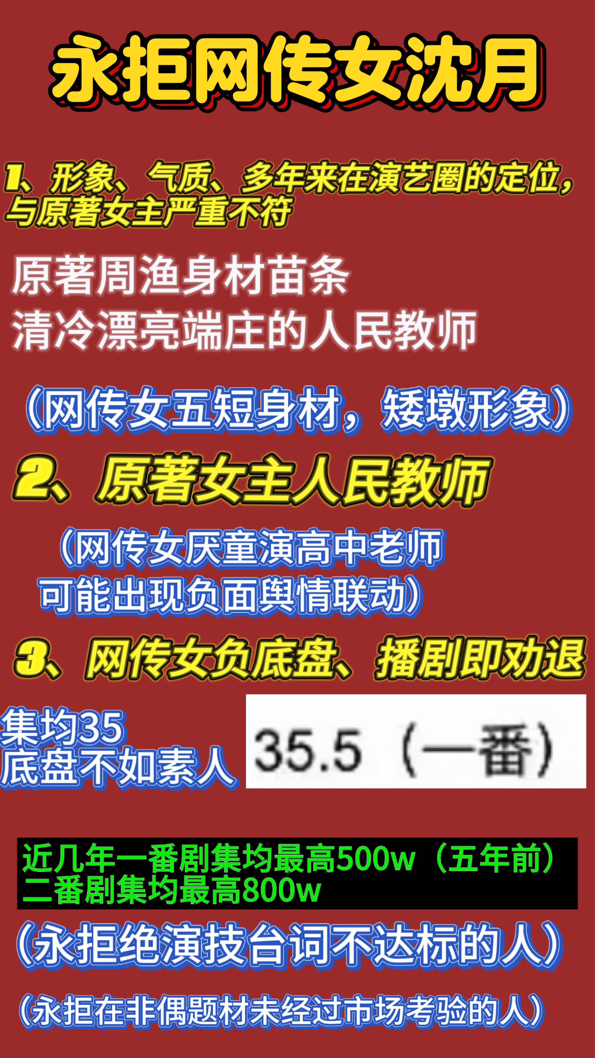 但愿人长久永拒沈月 放哪一家都是要被永拒的程度,粉丝自己都承认了请剧方慎重考虑网传女演员,不要让形象演技不适配、播剧成绩负底盘的人成为但愿人长久的最短板!