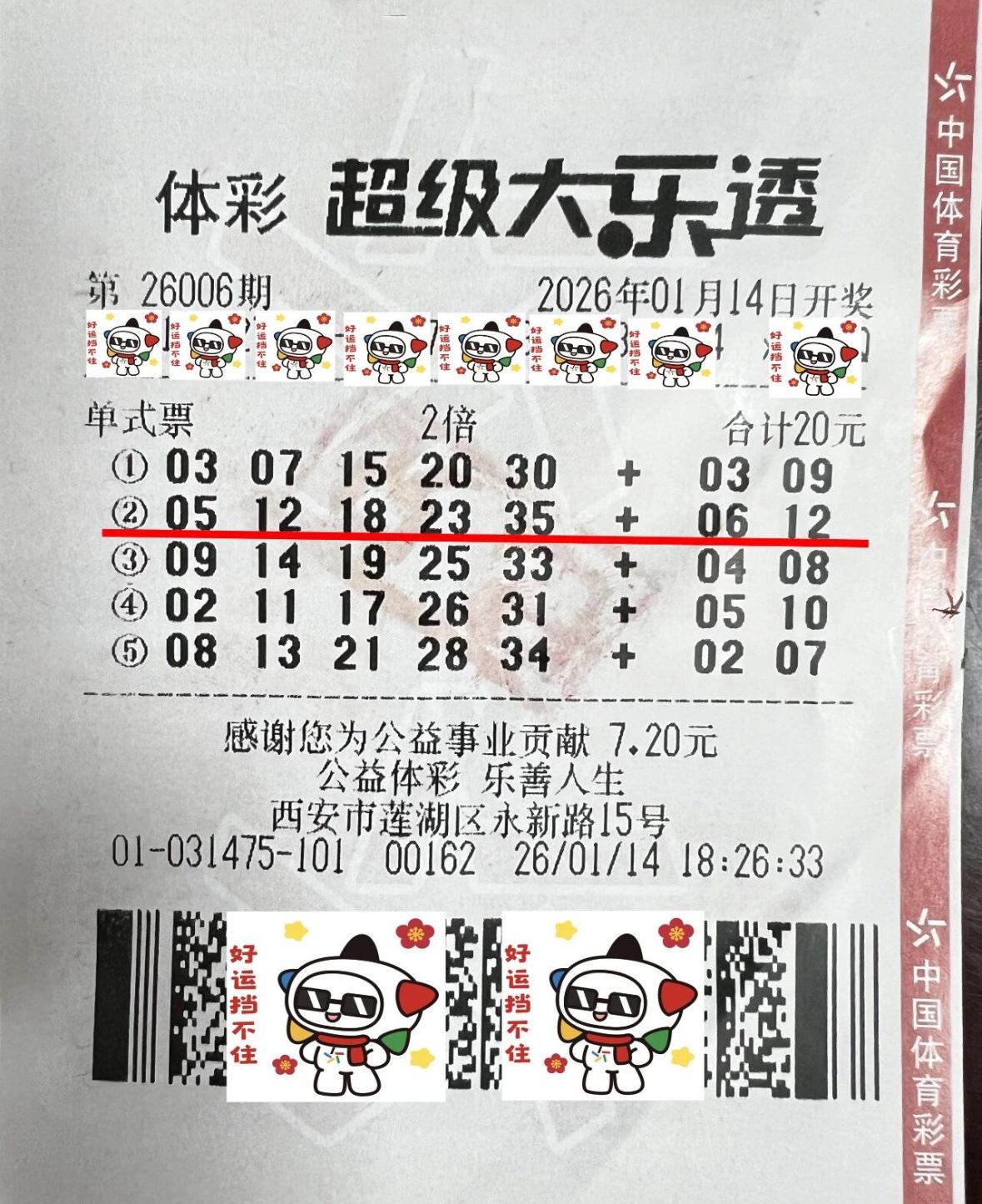 上期体彩超级大乐透第26006期开奖中,来自陕西西安的幸运彩民赵先生凭借一张自选