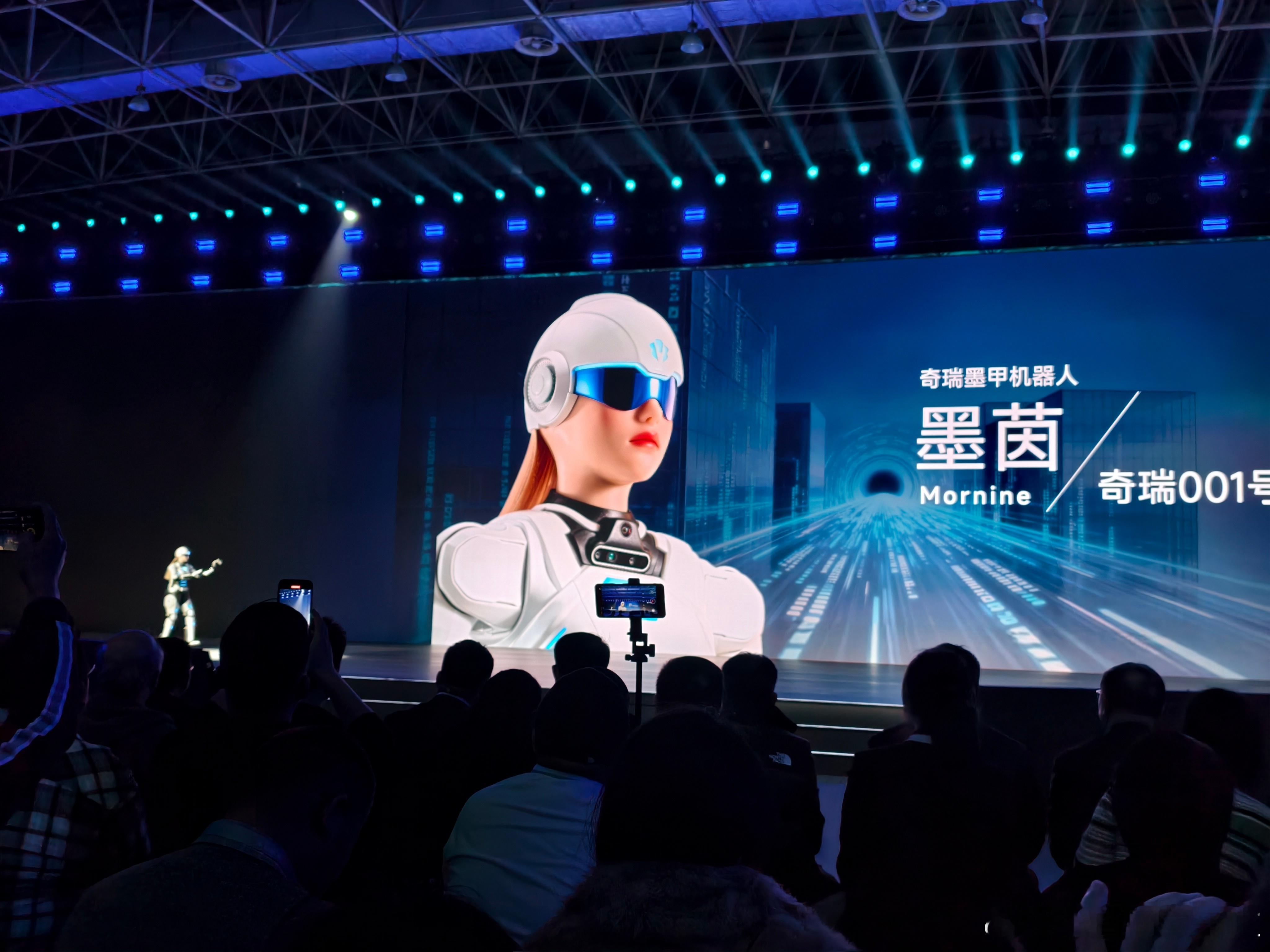 2026 奇瑞汽车 AI 之夜,展馆外摆满了奇瑞汽车的产品,产品矩阵相当丰富。开局先来了一个墨甲机器人,场景是做 AI 交通员。大v聊车2026奇瑞汽车ai之夜