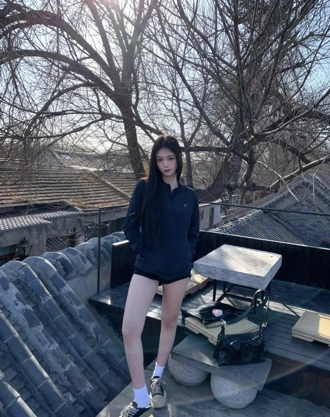 在老胡同的屋顶邂逅冬日暖阳,全黑穿搭裹着随性的松弛,让斑驳树影与青砖灰瓦,定格这份独属于老城的慵懒时刻