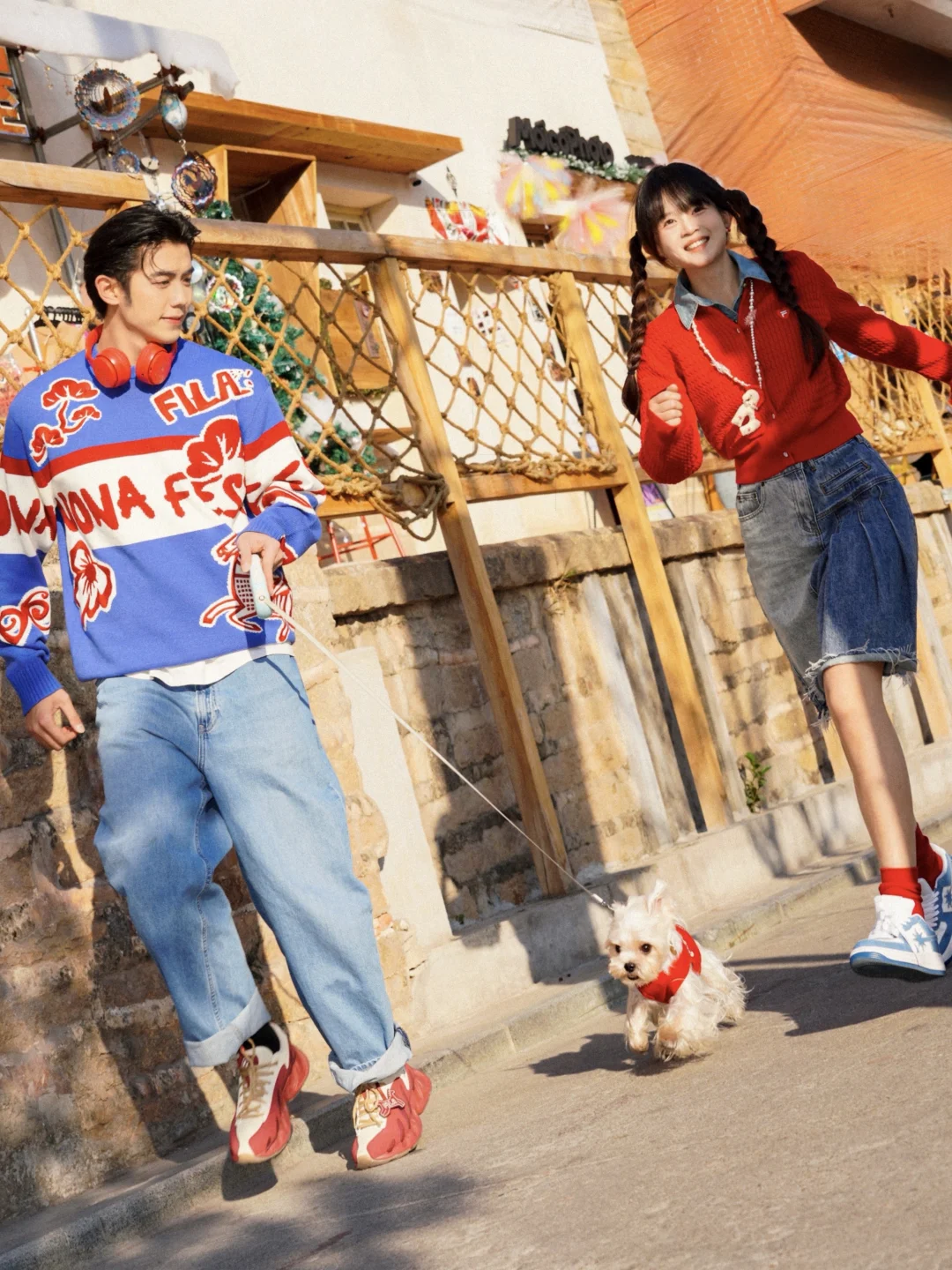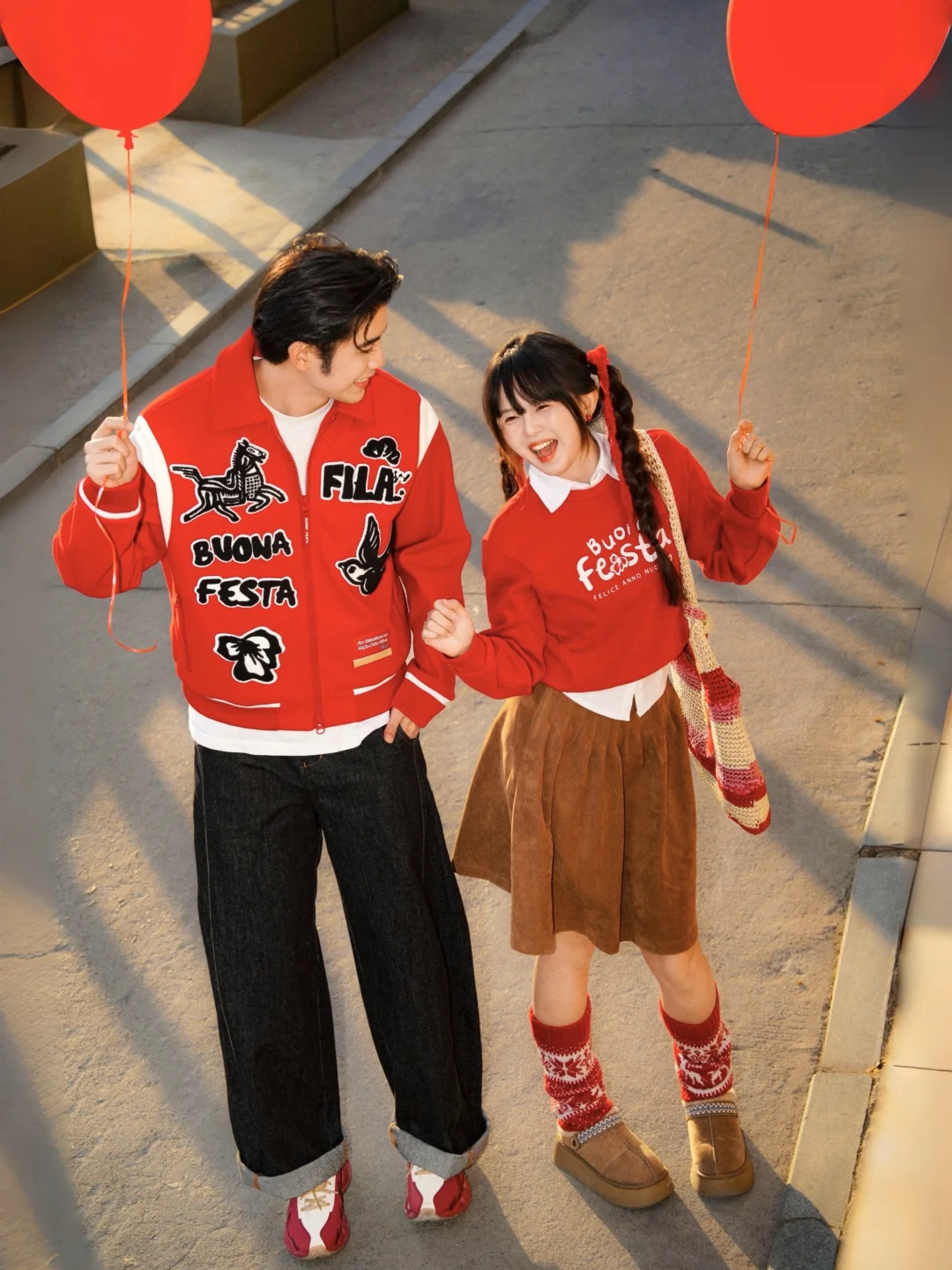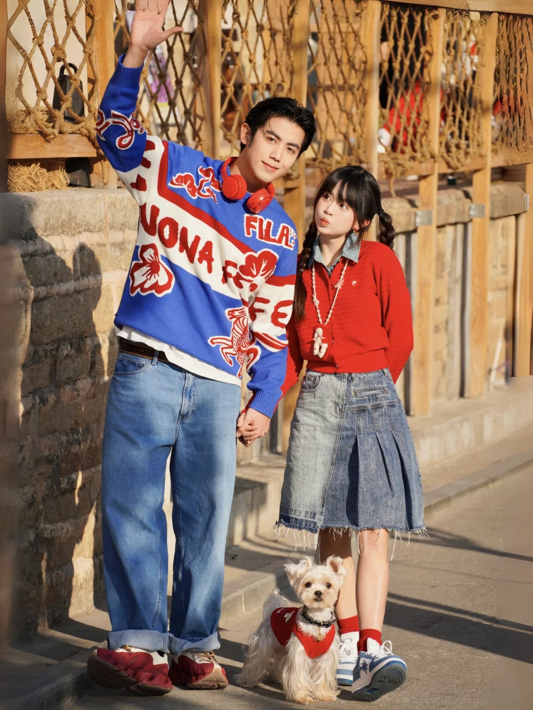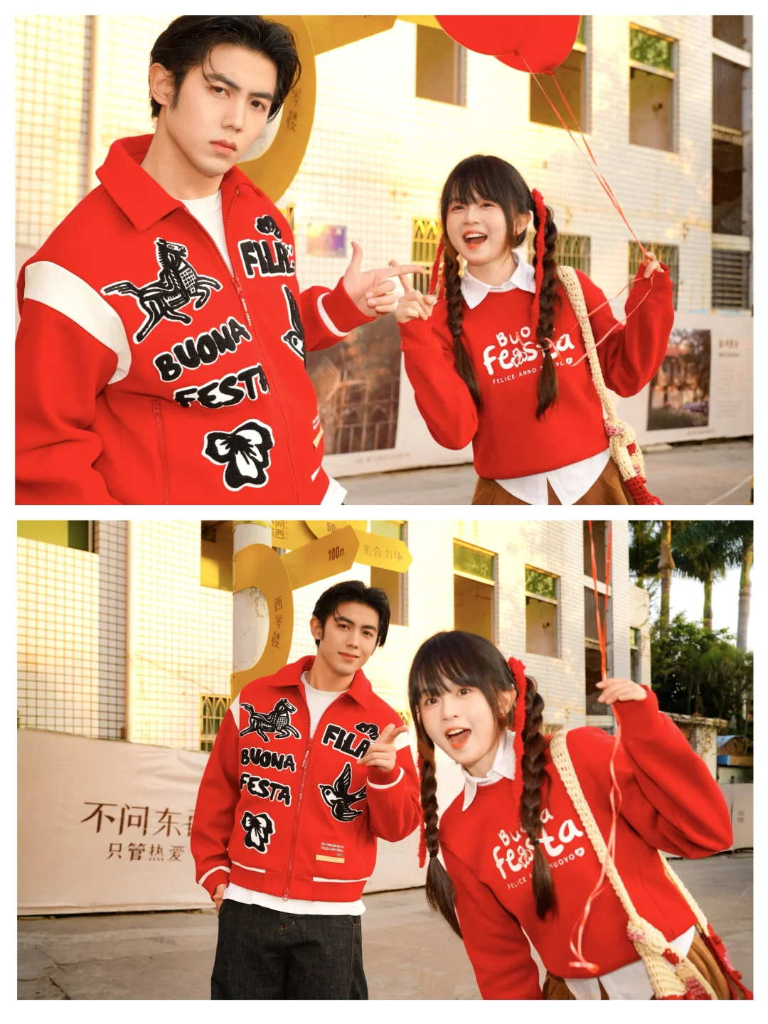 这次和豆子选了FILA的两套红色系搭配