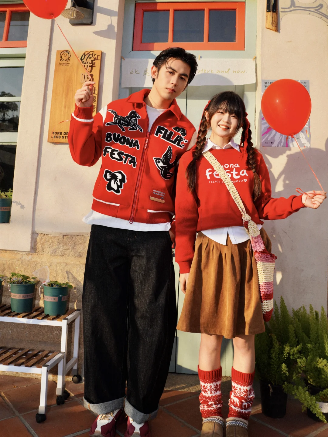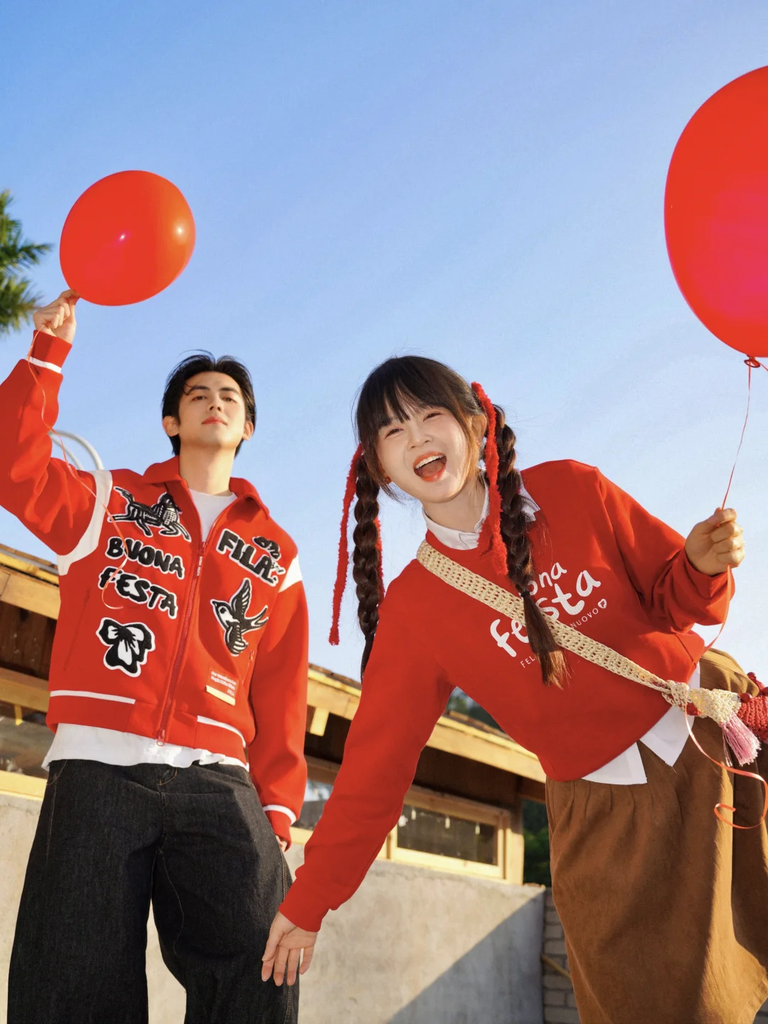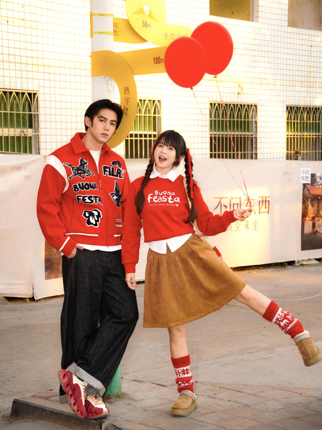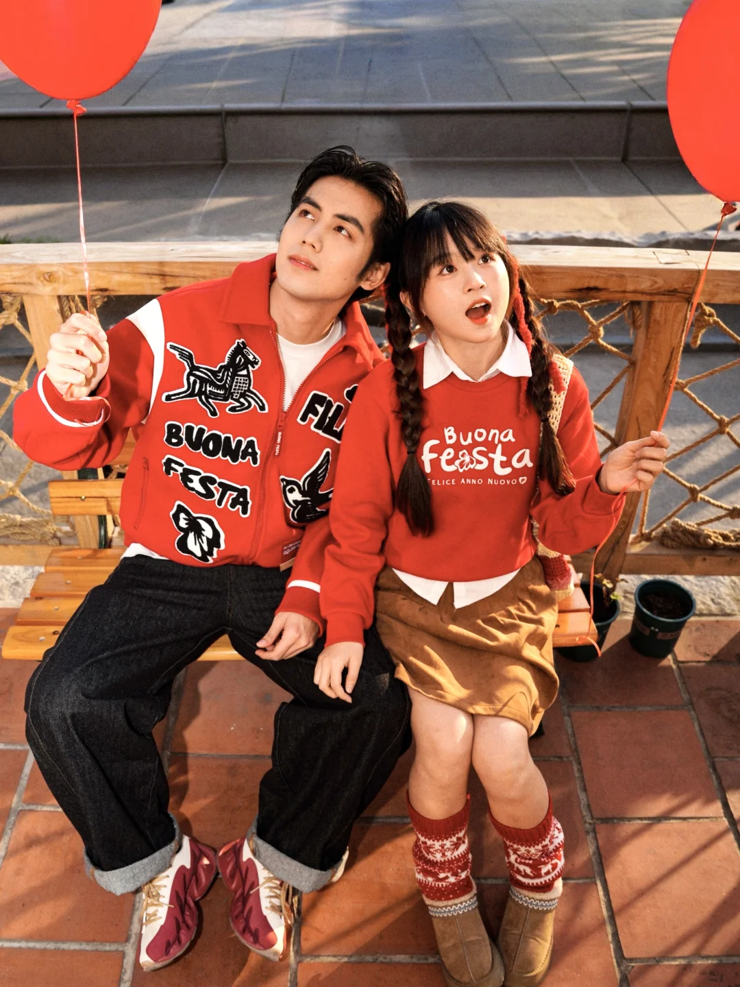 这次和豆子选了FILA的两套红色系搭配