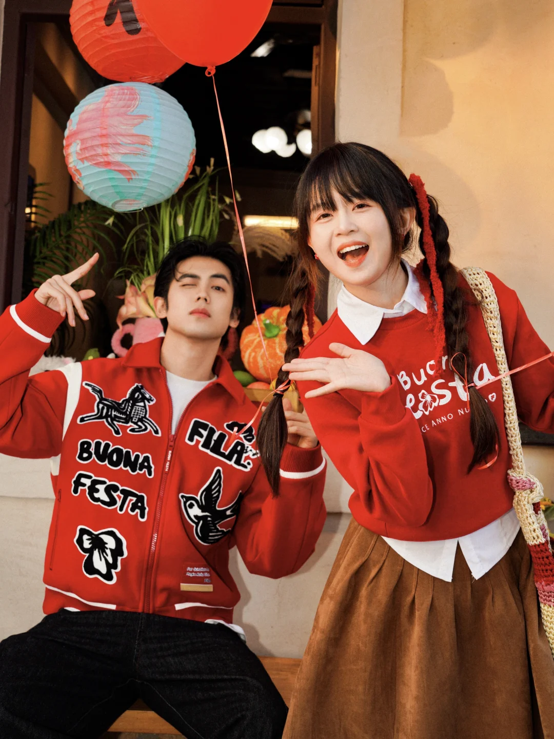 两个人同框就像把“鸿运成双”穿在了身上