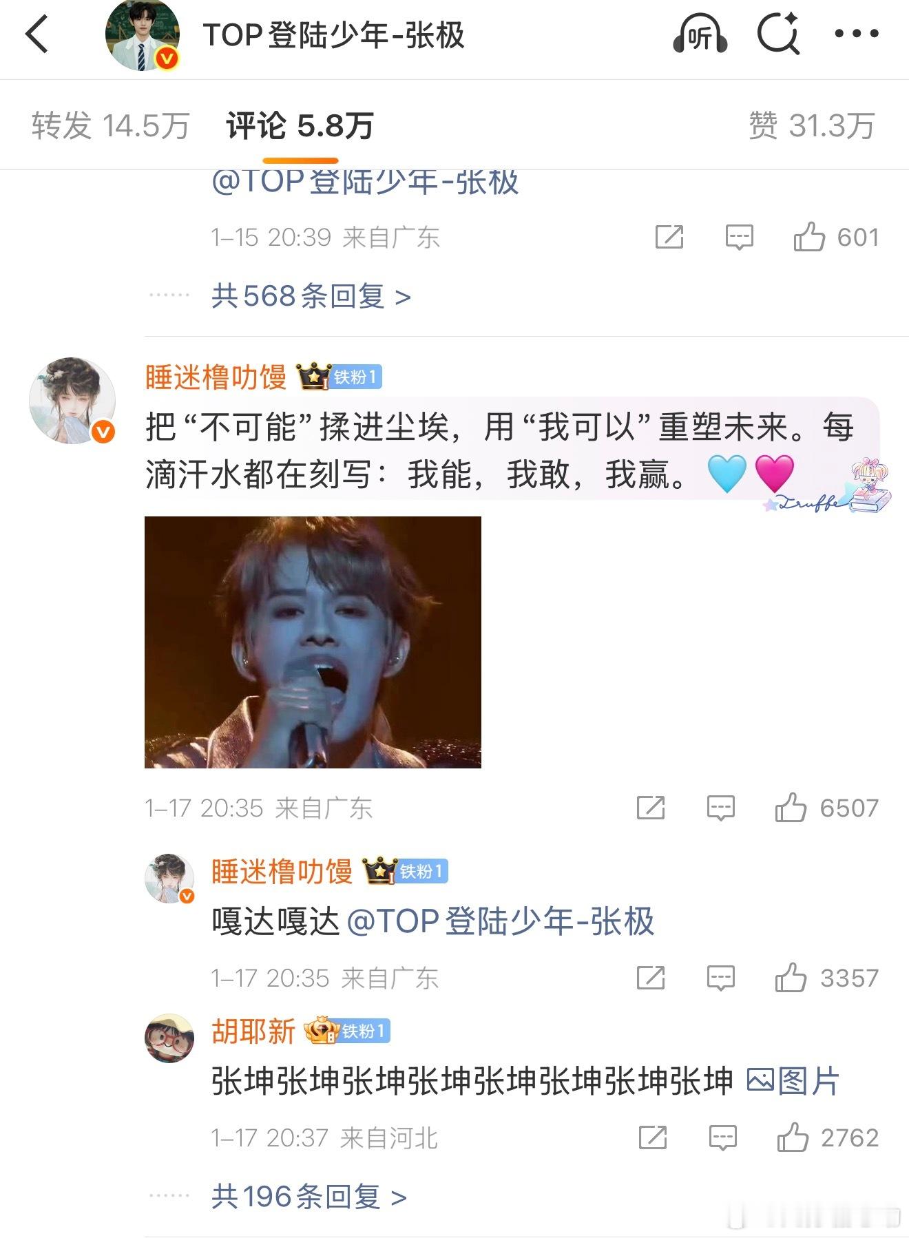 橹穆 张极橹穆把张极的外显、和微博评论图了