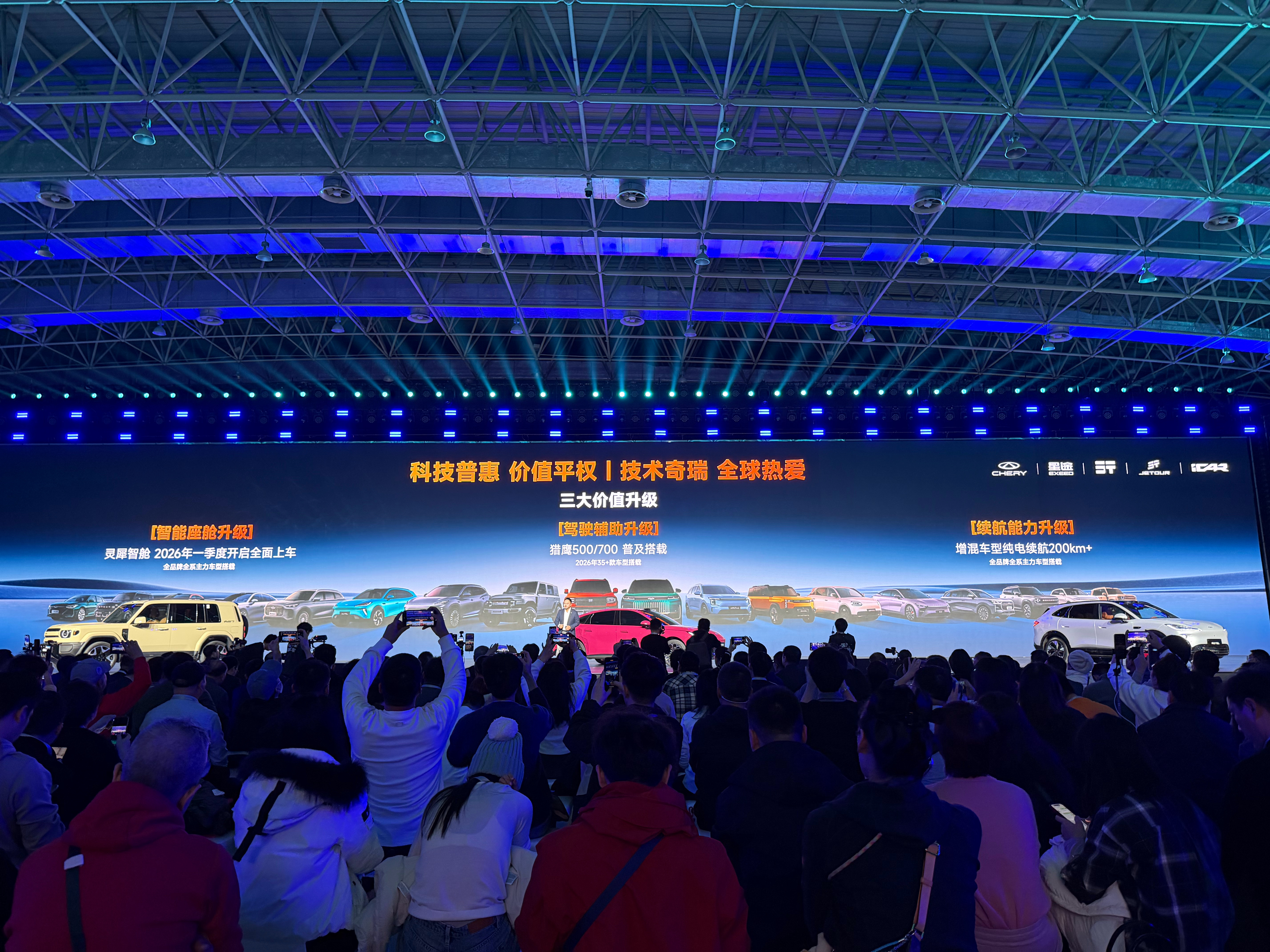 科技有AI 2026奇瑞汽车AI之夜人形机器人开场,能看出AI之夜奇瑞想带给大家全新的体验和认知。紧接着就是老板讲话,奇瑞要推动AI像物理世界延伸,把汽车大脑装进其他各个产业的身子。今天信息量不小,当然还有一季度的新车。