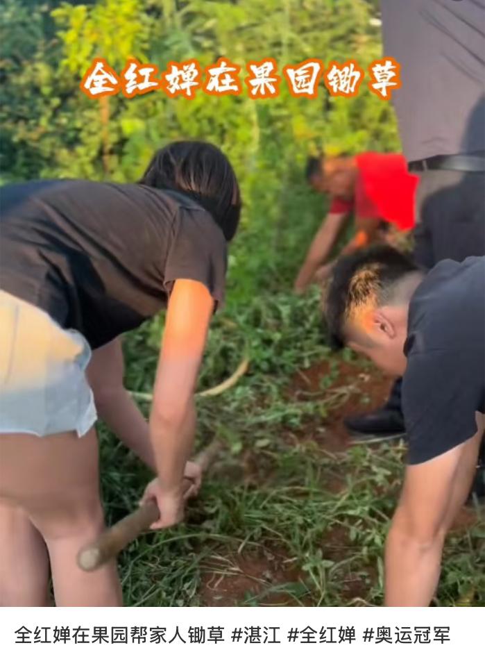 奥运冠军光脚锄草, 全红婵回村帮爸爸干农活! 奥运金牌在身, 双手却沾满泥土一一 全红婵假期回到湛江老家, 光脚在果园帮爸爸锄草, 真实自然的模样打动无数人。 休假期间,全红脱下运动服, 换上家常衣,赤脚踩进田间。 拔草、搬苗、冲洗农具,她动作熟练, 与父亲配合默契,毫无冠军架子。 社交媒体上, 她弯腰劳作的画面朴素却动人。 尤其当她蹲下为父亲冲洗脚上泥土时, 网友感叹:"这才是最真实的美。" 不同于一般年轻人对农活的疏离, 婵分得清作物与杂草, 耐得住日晒与辛苦。 有网友直言:"现在还有几个年轻人愿意下地?她红了却没飘。" 值得一提的是, 同为奥运冠军的陈芋汐 在这方面便有所不同。 正如网友所说:"陈芋汐恐怕分不清大蒜和韭菜、莴苣与莴笋、白菜和娃娃菜。" 并非比较成就, 而是两种不同的成长轨迹与生活认知。 全红婵的难得, 正在于荣誉加身后仍愿俯身泥土。 她的双手既能精准掌控入水角度, 也能熟练料理农活, 这份"不忘本"的朴实, 恰恰是浮躁时代最稀缺的品质。 从农田到跳台,再回到农田, 婵宝完成了一个冠军最完整的成长闭环。 她的故事提醒我们: 真正的光芒不在于永远站在高处, 而在于登上顶峰后, 仍能轻松走下台阶,回归平凡。 这个假期,她在田间的身影, 或许比金牌更加闪耀。