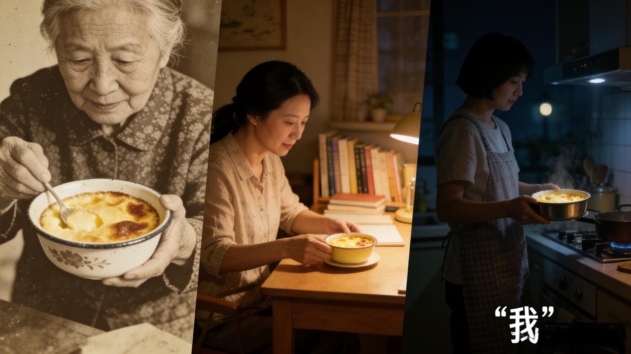 看似甜点实则药方?这碗「烤蛋奶」温暖三代人的胃 深夜的烤箱“叮”一声响 满屋飘起焦糖与蛋香交织的暖雾 瓷碗里那层金褐色脆壳微微颤动 勺子破开时嫩滑蛋奶如云朵绽开 深夜十一点,当小区最后几扇窗户陆续暗去,我家厨房却亮起暖黄的光。烤箱“叮”一声脆响,门打开的瞬间,焦糖的微苦与蛋奶的醇厚香气汹涌而出,像一场温暖的雾,瞬间占领了整个空间。 白瓷烤碗里,蛋奶表面凝结着一层均匀的金褐色脆壳,边缘微微鼓起,随着碗的移动轻轻颤动。银勺轻轻压下去——“咔嚓”一声,脆壳应声破裂,底下嫩黄滑润的蛋奶体微微晃动,冒着细密的热气。 入口的瞬间,童年记忆瞬间复活。先是焦糖脆壳在齿间碎裂的微甜,紧接着蛋奶的嫩滑占领整个口腔,温润厚实,像一口吃进了云朵。那甜度克制得恰到好处,蛋香与奶香层次分明,顺着食道一路暖到胃里。 其实做法简单得让人意外——三只鸡蛋,一盒牛奶,少许白糖,便是全部。蛋液要耐心打匀,过筛两遍才能达到极致的滑嫩;糖在锅底融化成琥珀色焦糖,迅速倒进碗底,是风味的灵魂。最关键的还是烤箱里的耐心:水浴法,中下层,看着蛋液在低温中慢慢凝固,像一场安静的魔术。 朋友第一次吃时惊呼:“这不就是法式焦糖布丁吗?”我笑着摇头。比起餐厅里那些顶着繁复名字的甜点,烤蛋奶的气质更接近胡同口的老面包——没有花哨装饰,却有踏实的满足感。它是外婆用搪瓷碗装着的午后点心,是母亲在考试前夜放在书桌边的温柔,如今是我在加班深夜慰藉自己的仪式。 有趣的是,这看似朴实的食物,竟藏着跨越文化的默契。葡萄牙人的“甜鸡蛋”,法国人的“烤奶油”,广东人的“炖蛋”,山西人的“甜酪蛋”……不同名字背后,都是鸡蛋与奶在火焰作用下最直白的歌唱。人类对温暖的渴望,原来如此相通。 食物最动人的时刻,不在米其林餐厅的精致摆盘里,而在深夜厨房那束光下。 当你用勺子轻轻敲碎那层焦糖脆壳时,敲开的何止是一道甜点?那是与过往时光温柔的连接,是味蕾记住的、永不褪色的暖意。 你的记忆里,是否也有一碗专属的“治愈系”食物?是寒冬的烤红薯,还是夏夜的绿豆汤?