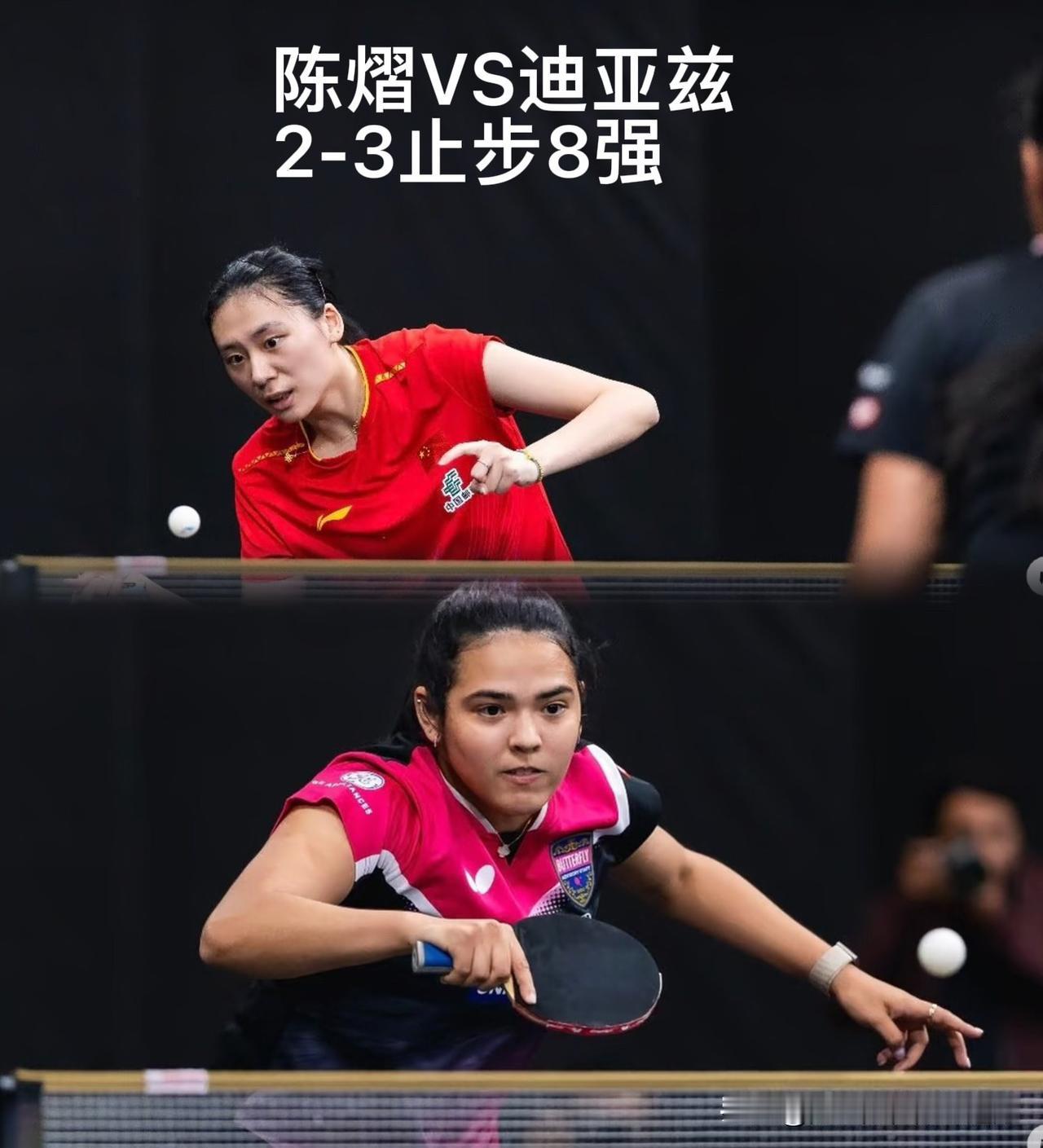 陈熠毕竟是小蒋, 还需要很多磨练, 能有今天这个成绩已经很不错了, 要知道迪亚兹也是很强的对手! 陈熠啊, 一定要抓住这么好的机会和资源, 多参加比赛, 这次也许是兼三项太累了, 下次再继续努力, 不论是遇到削球还是什么对手, 都要使出浑身解数, 好好挣积分, 争取什么时候取代孙颖莎的位置?