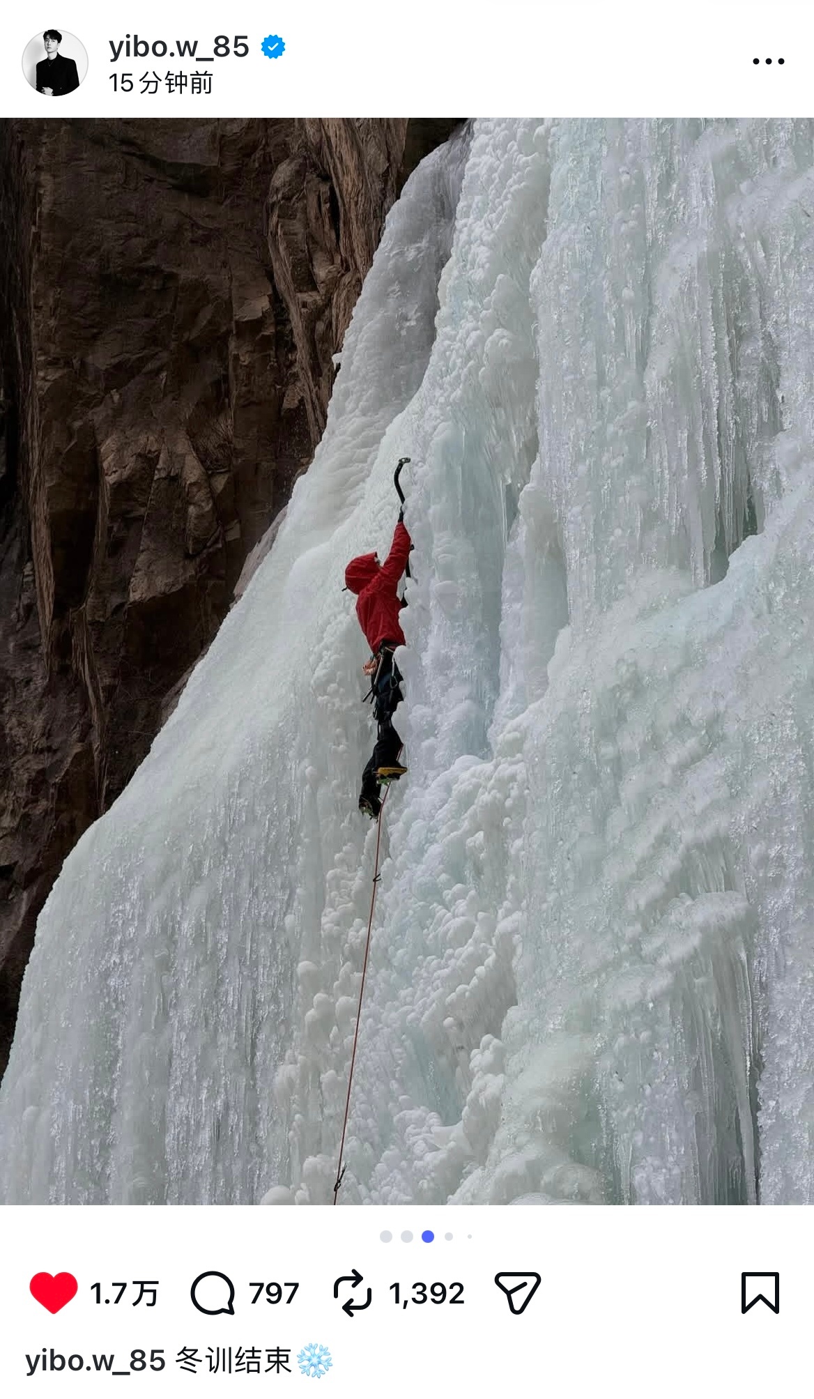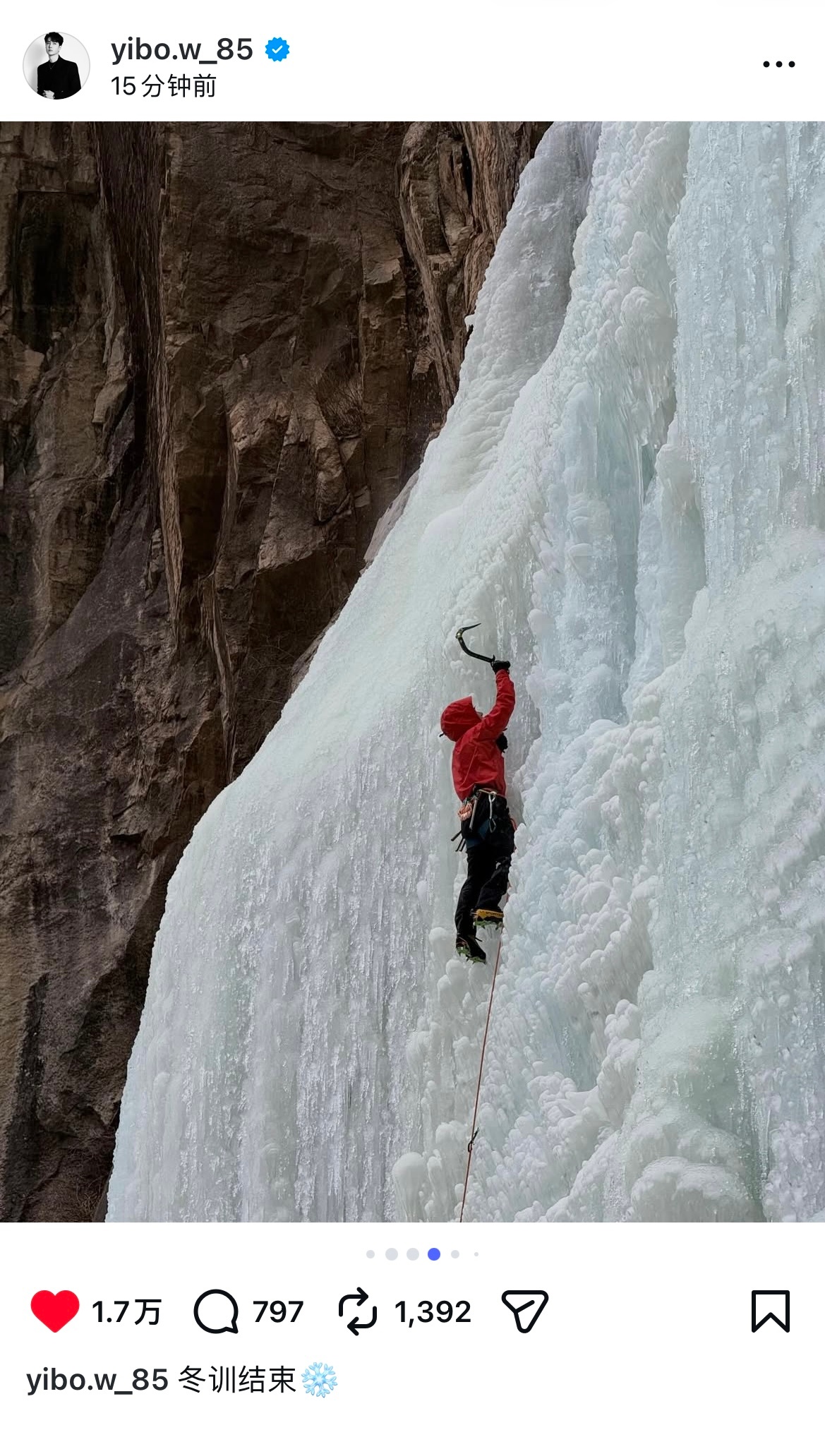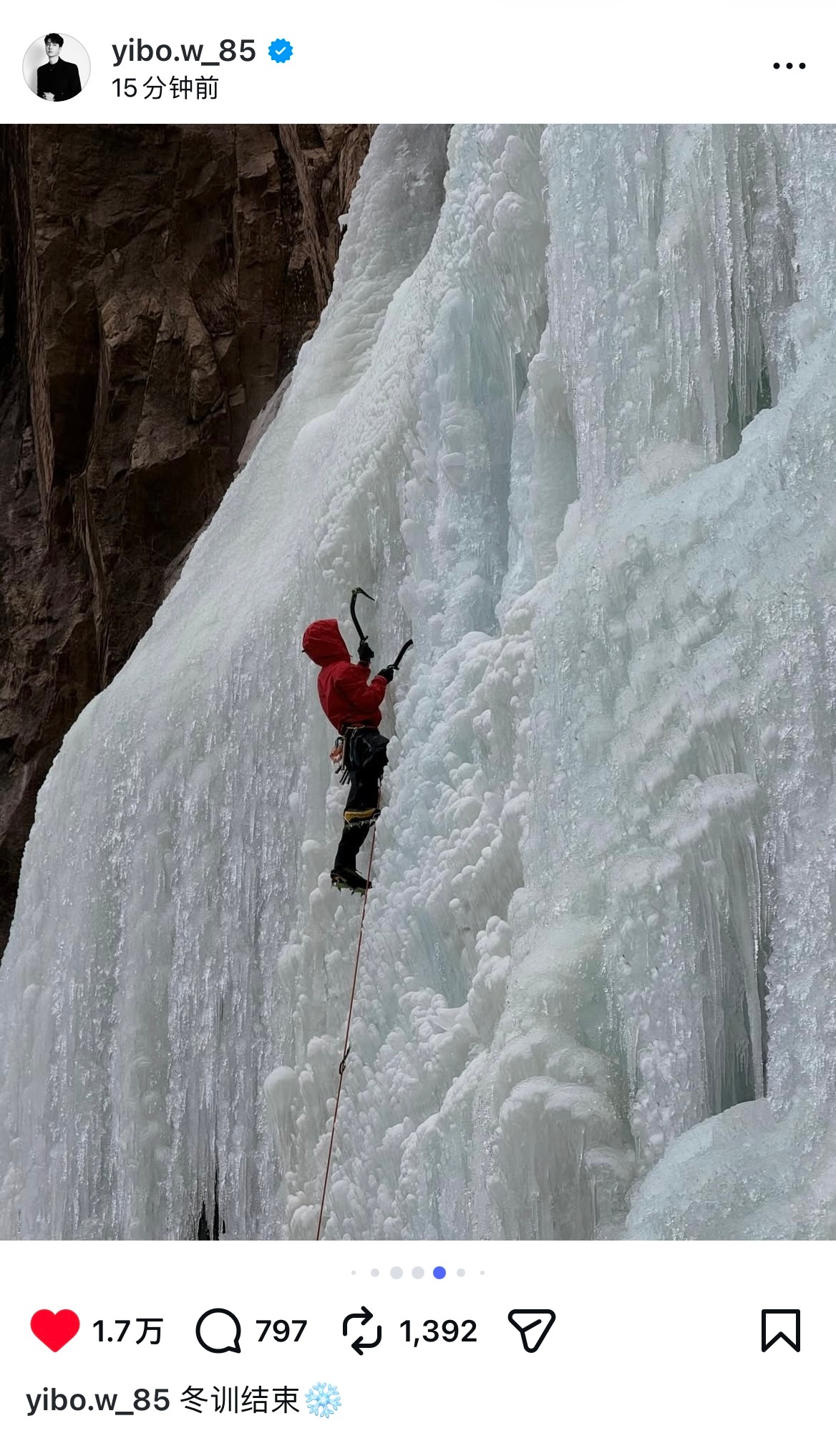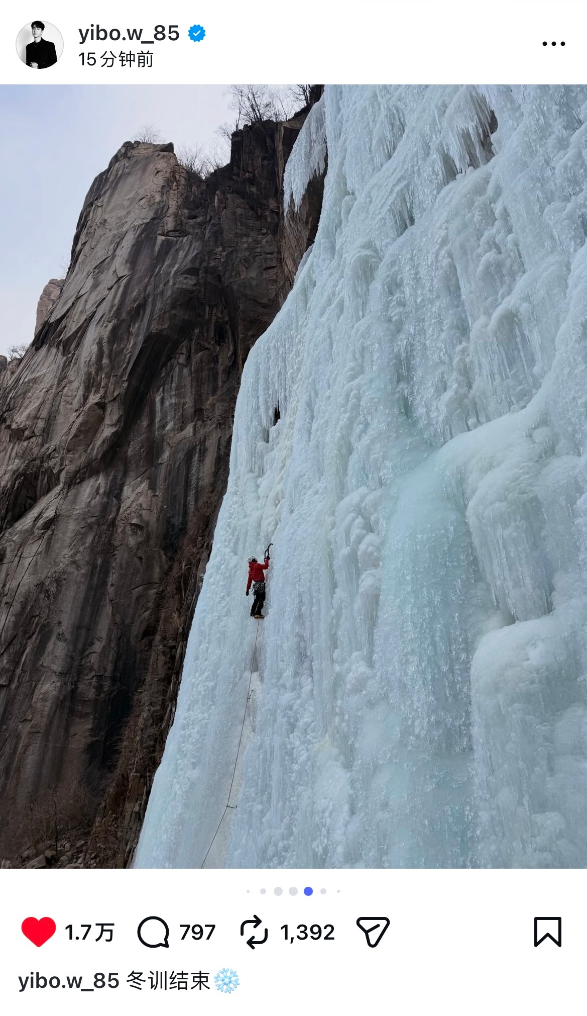 RS👉王一博晒攀冰照 来啦 都去安利 gc上➕🔥自家