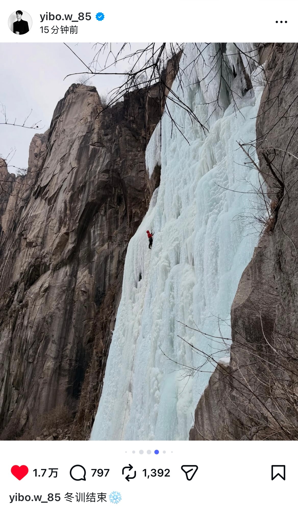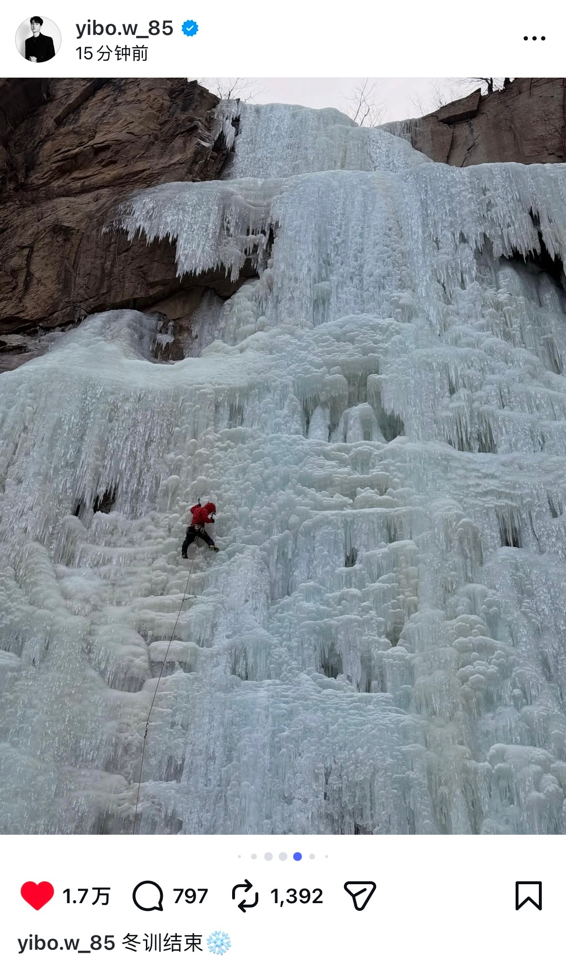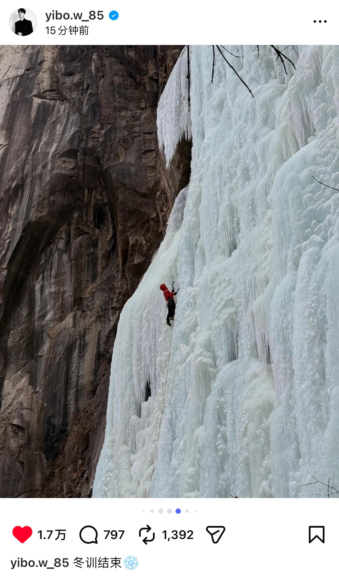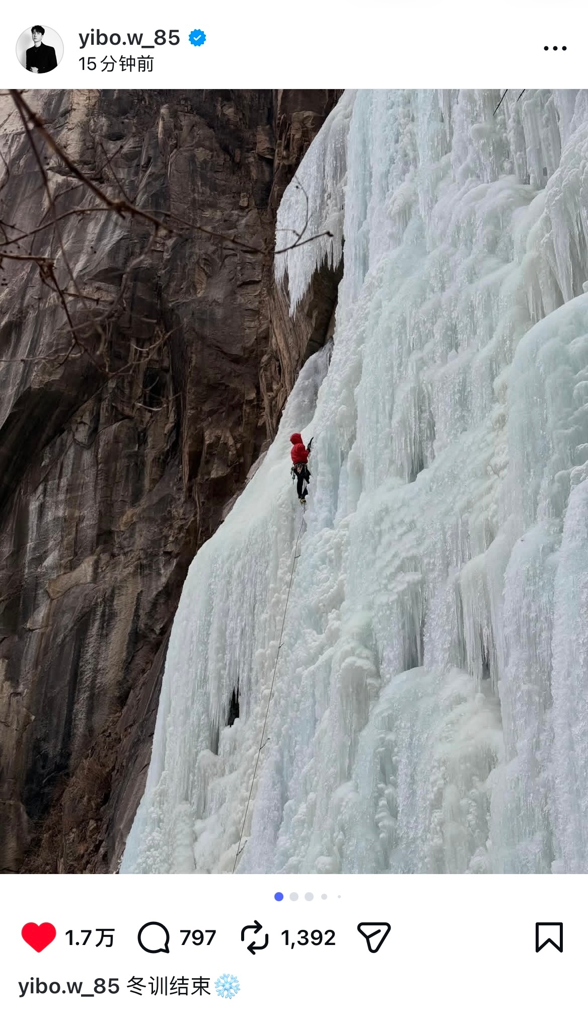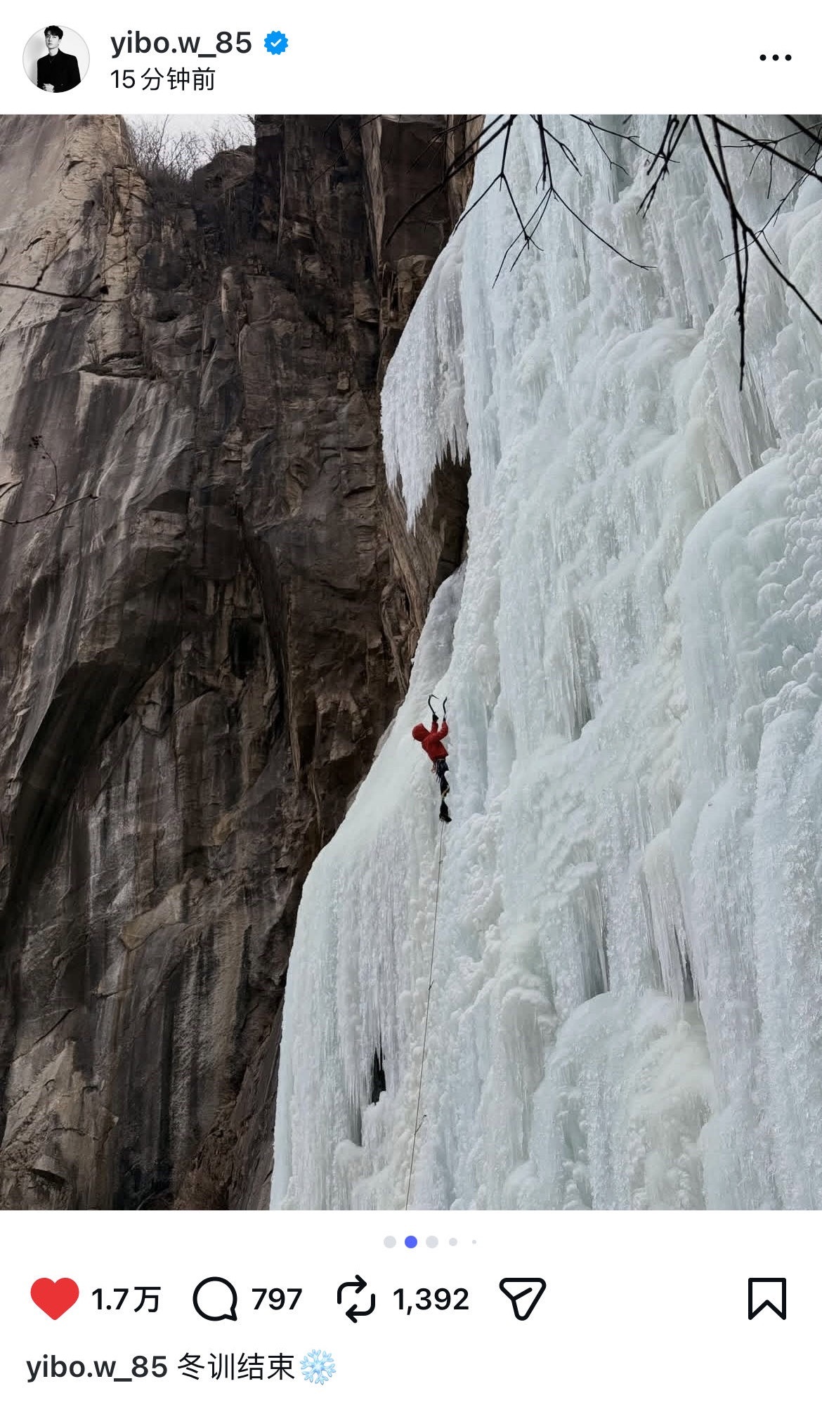 RS👉王一博晒攀冰照 来啦 都去安利 gc上➕🔥自家