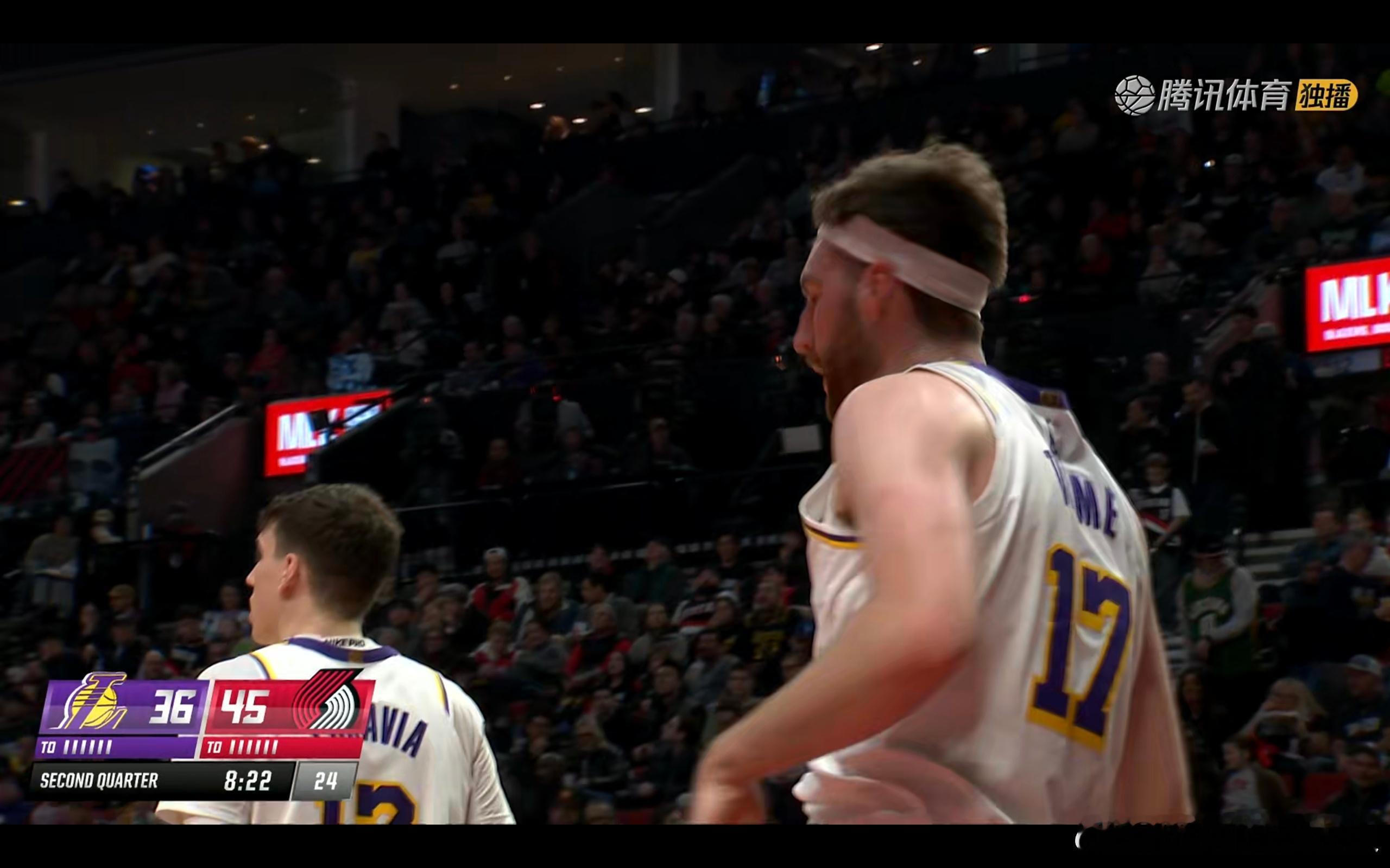 朱-蒂米登场连得5分,临时替补中锋湖人vs开拓者