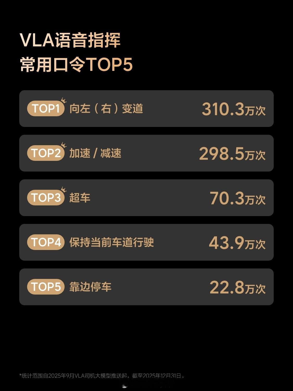 理想 2025 年辅助驾驶报告来了,带大家看几个关键数据:- 理想辅助驾驶累计用户 150.5 万人;- 理想辅助驾驶累计里程 60 亿公里其中全年里程 30.7 亿公里;- VLA语音指挥累计使用 1,225.4 万次,变道以及加减速指令排在第一第二(约 300 万次使用);- 智能泊车全年使用 1.3 亿次;- 主动安全全年避免潜在事故 821.8 万次。2026 年,理想还即将引来 OTA 8.2 的升级,届时辅助驾驶能力会得到提升。理想汽车42mark新能源汽车