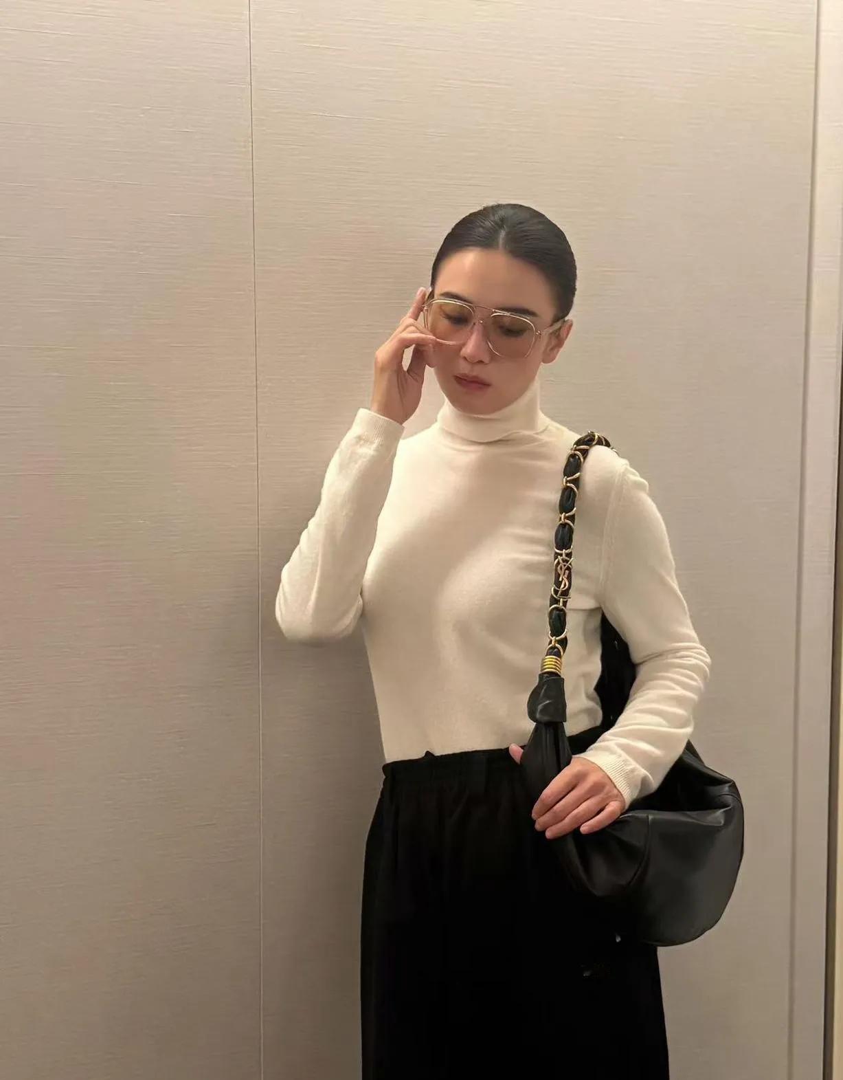 宋佳的中年穿搭赢麻了!白高领+黑阔腿裤,简约松弛又高级,这才是气质女神的正确打开方式~宋佳