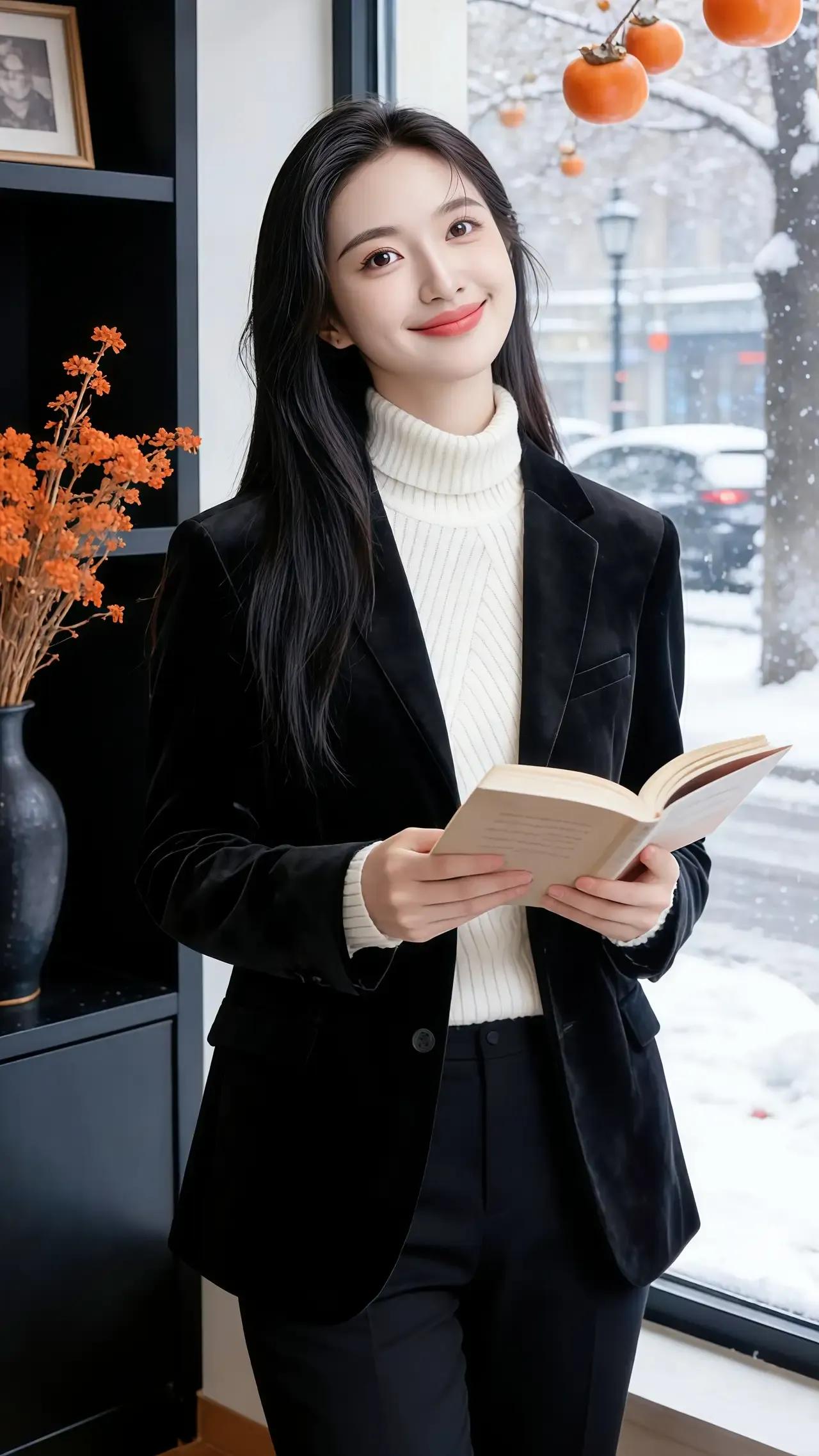 职场女神范儿,黑色西装搭配白衬衫,自信满满!💼💄