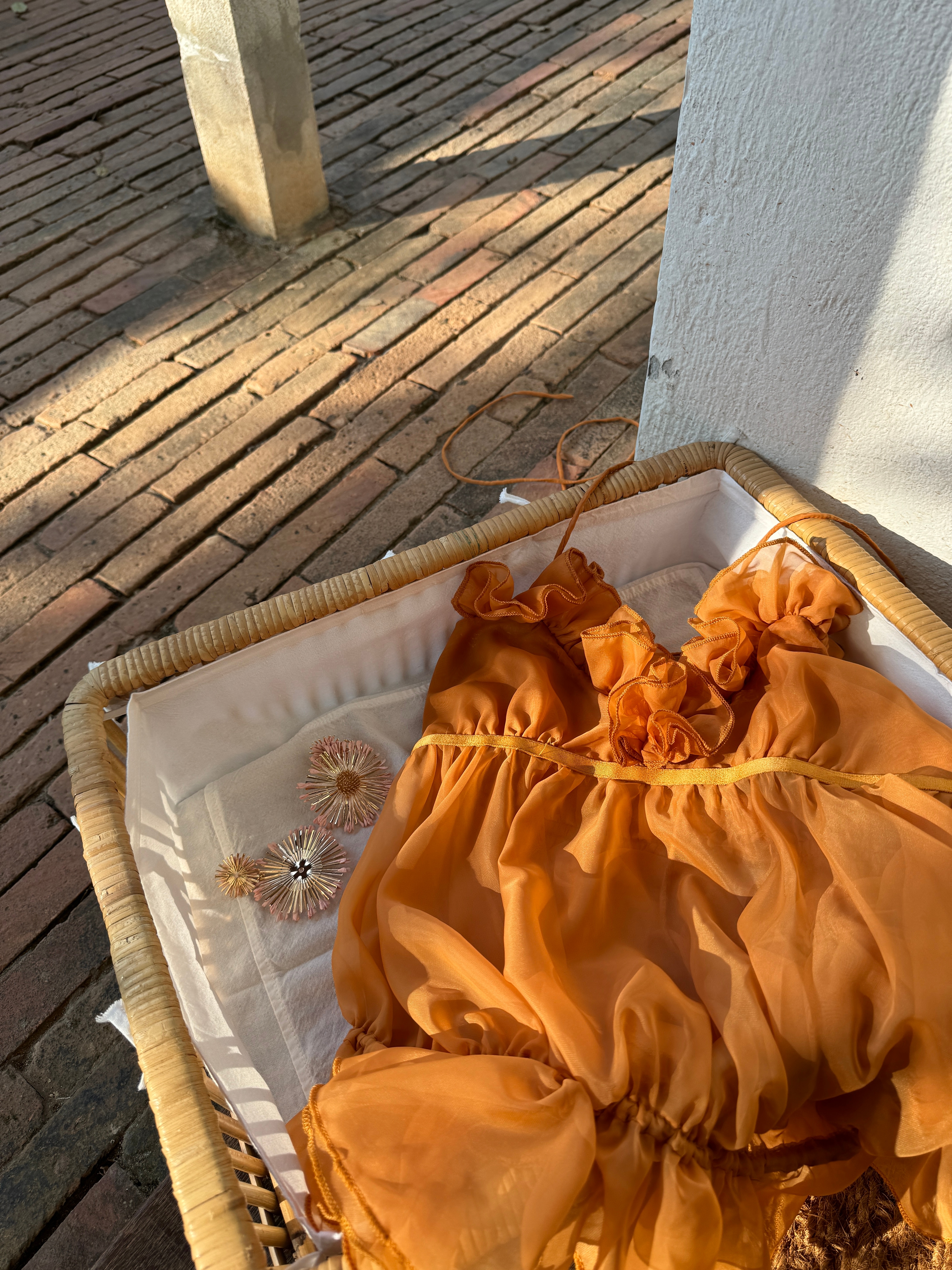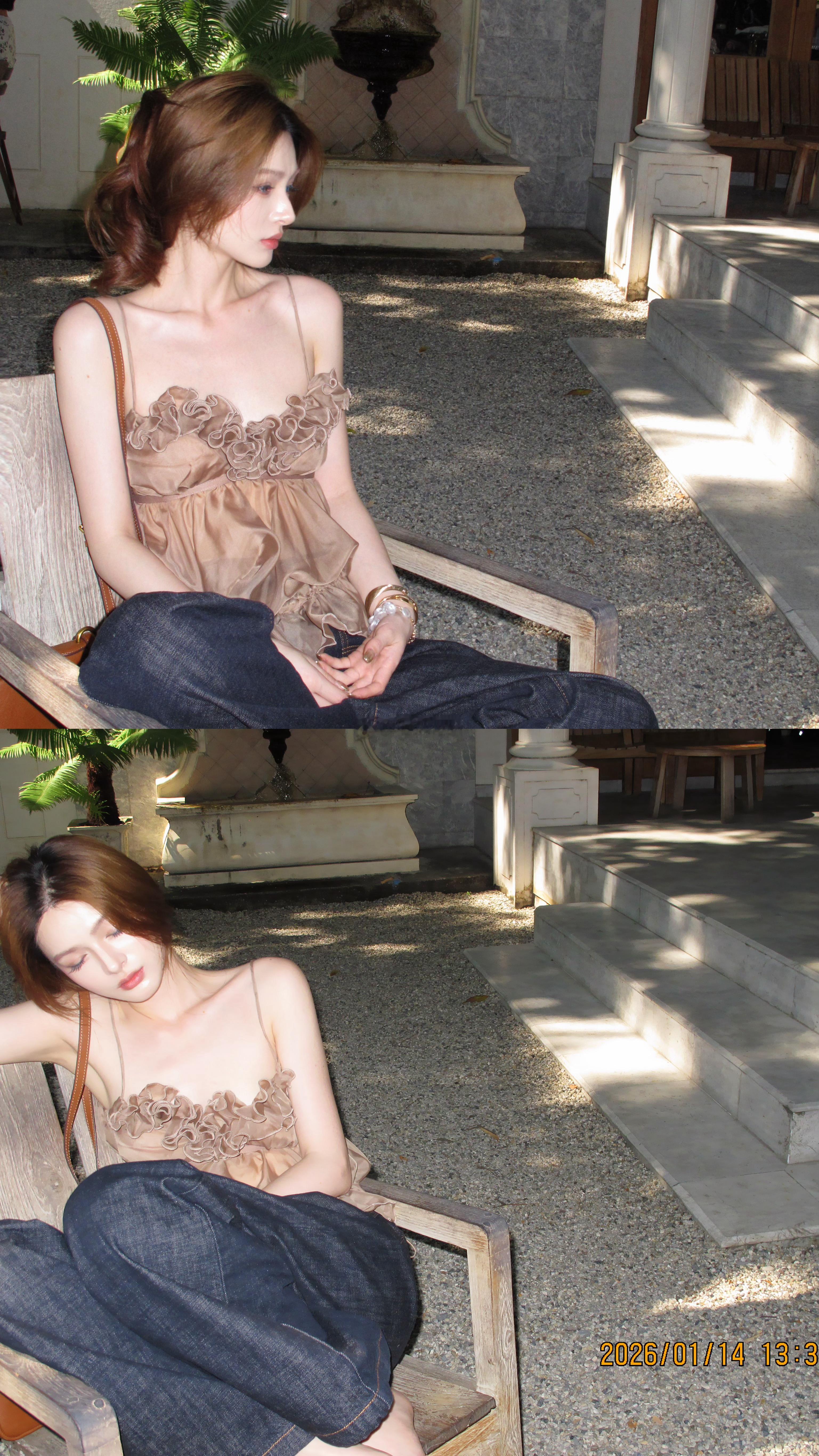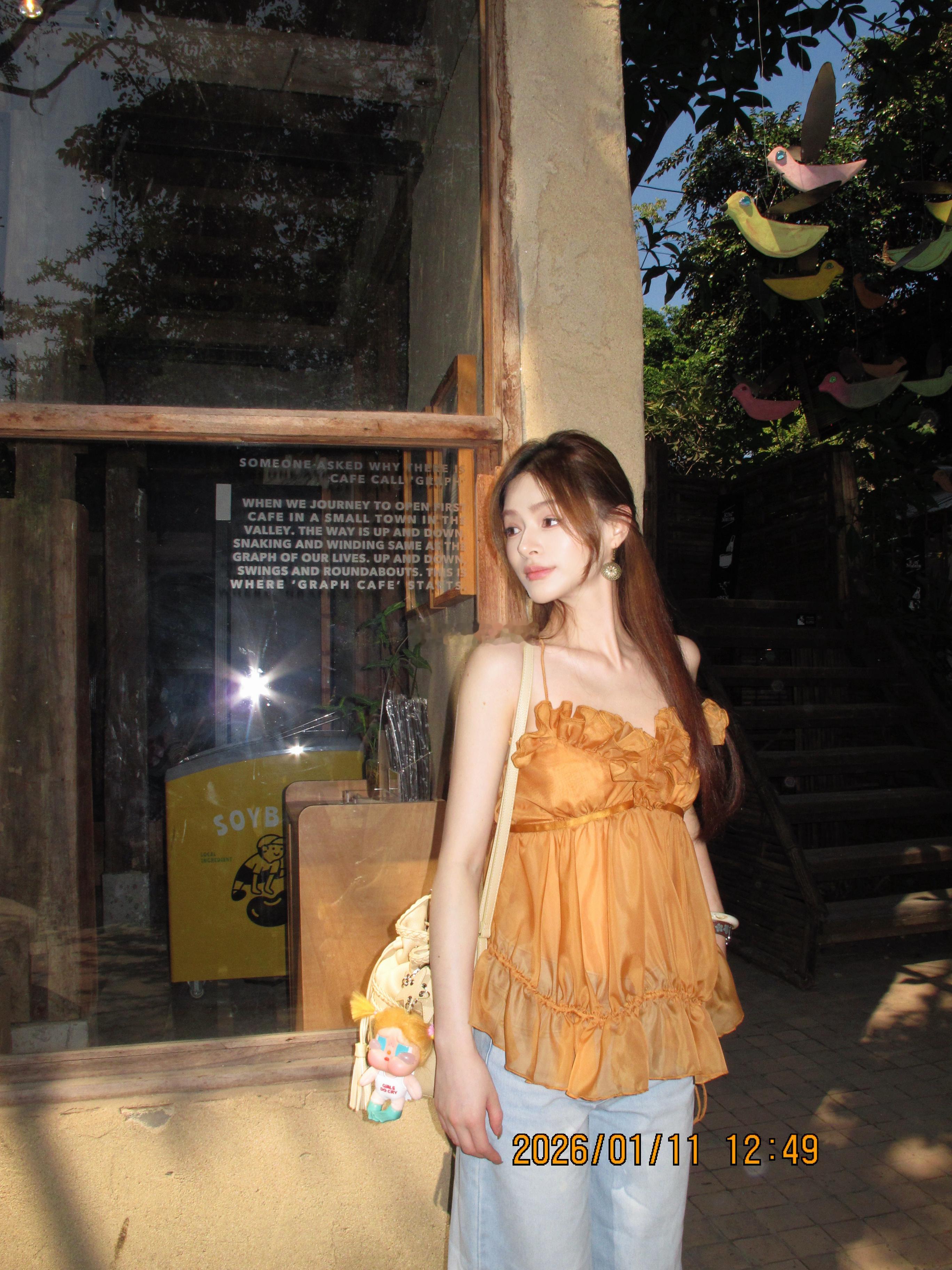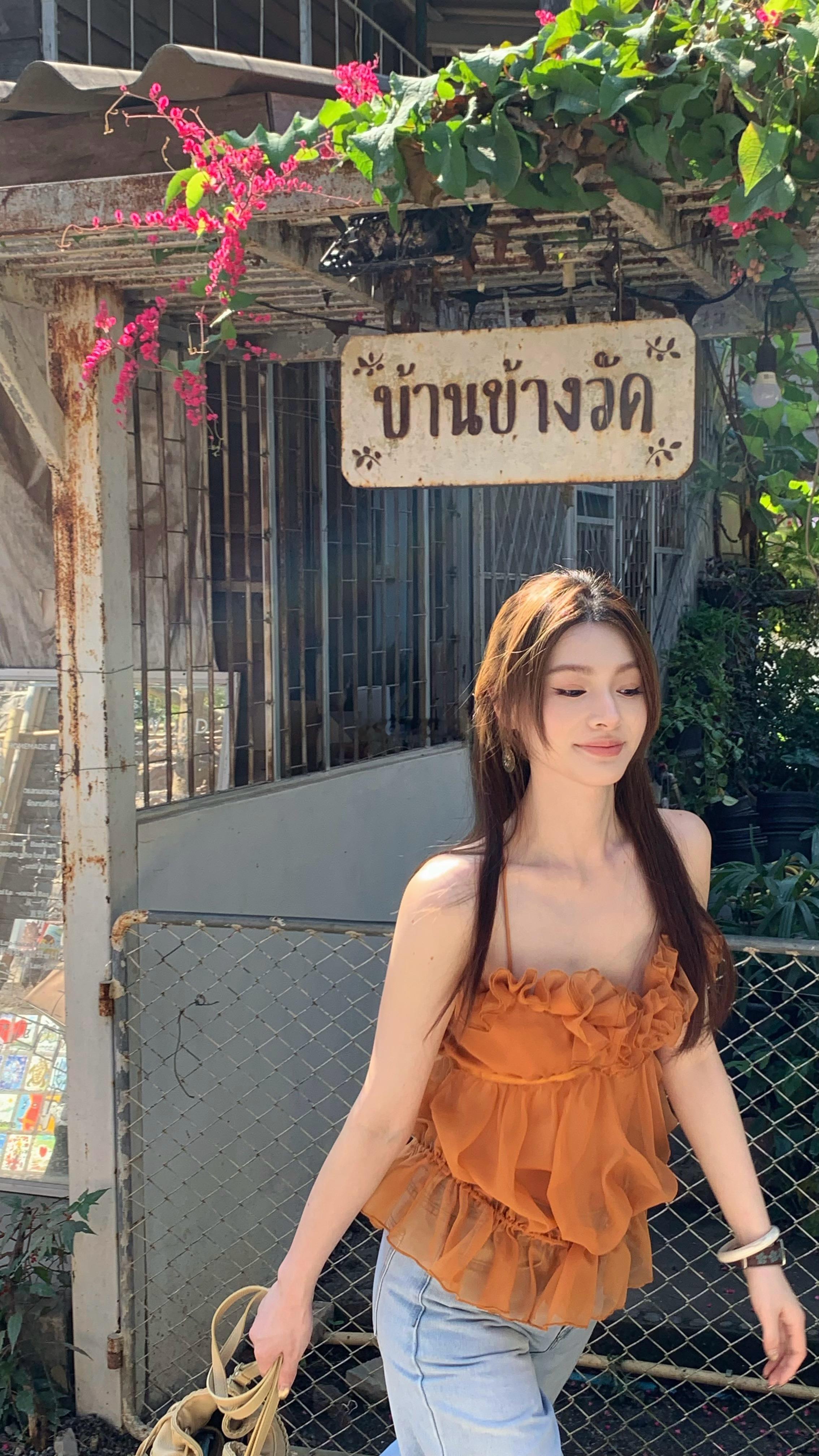 🍊只能说 这个新橘色太靓了!(当然咖色也很时髦好看 不一样感觉 裤子也会安排上 Lienni2026.1.23 20.00NEW 限时折扣 热恋 花苞仙女纱抽绳上衣