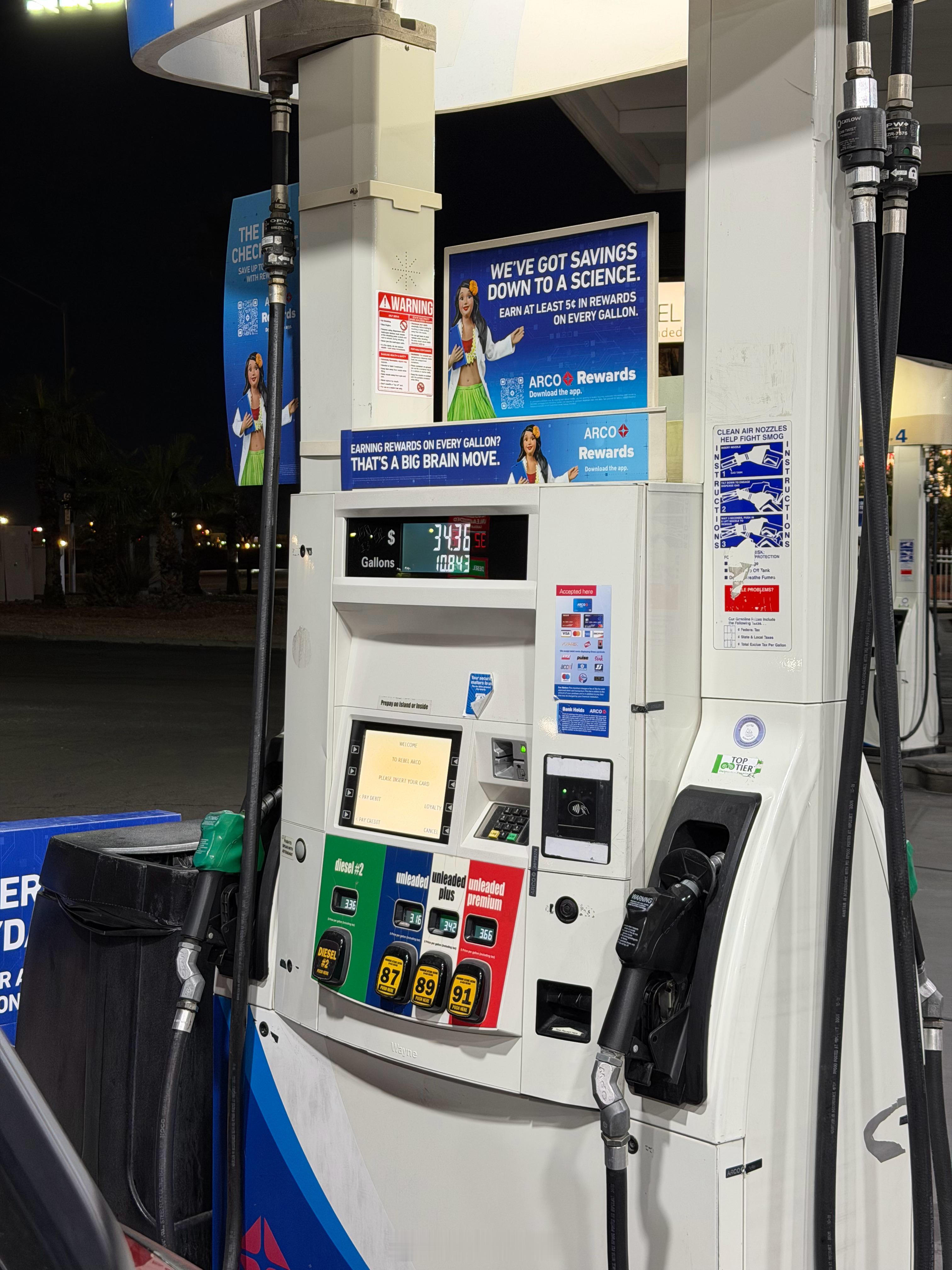 在美国租的日产 Rogue (对应国内东风日产奇俊)要还了,加一箱油给大家看眼费用。美国油价 87 号汽油,3.16 美元一加仑,折合 5.65 元一升,挺便宜的。美版日产奇俊 1.5T 3 缸发动机,跑了 227.4 英里,折合 366 公里。加油 41 升花了 240 元。百公里油耗 11.2 L,差不多每公里 0.66 元。大家觉得贵吗?42how日产 美国·Las Vegas