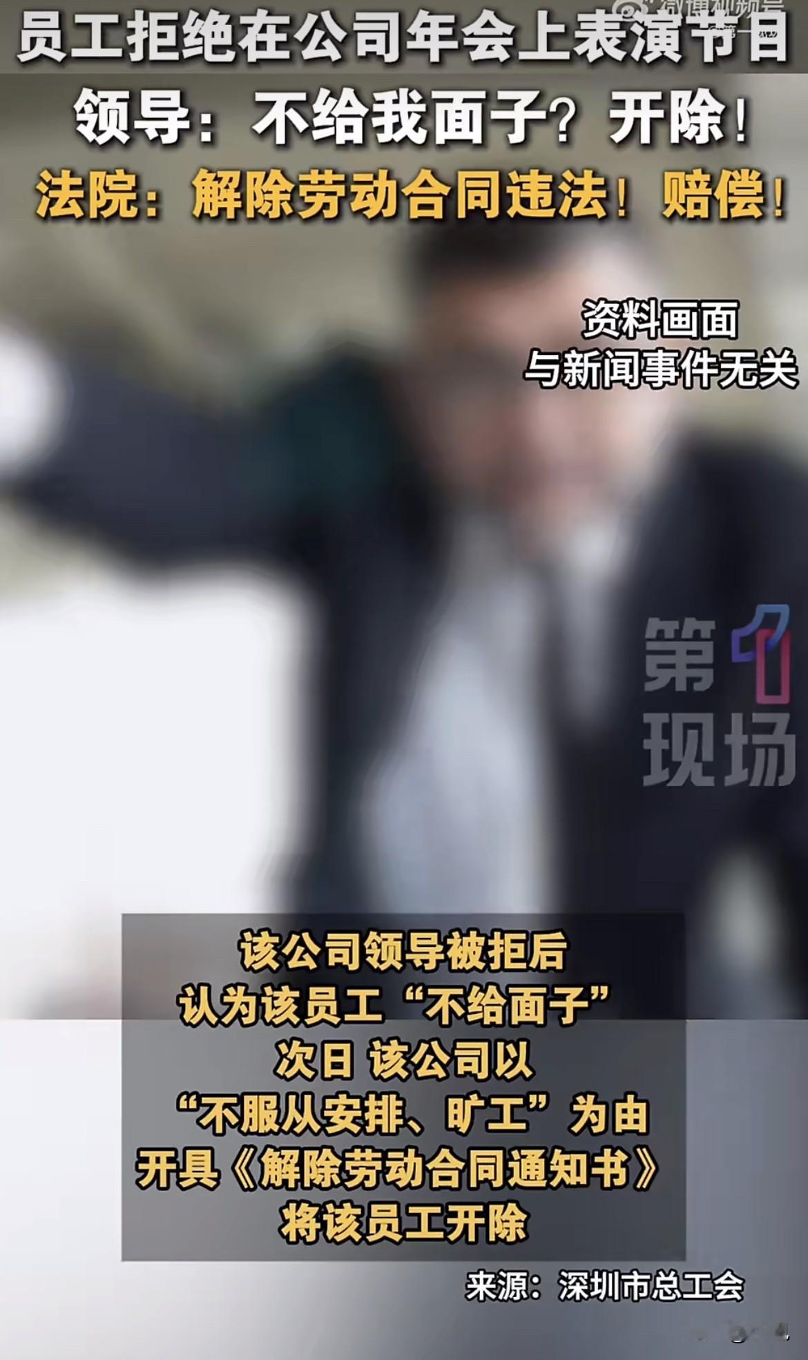 脱口秀没演成,工作丢了!深圳一公司领导要求员工年会表演脱口秀,员工说工作忙拒演,领导觉得没面子。第二天,公司直接以“不服从安排、旷工”为由,把人开除了。 这理由找得真是荒唐。工作忙不演节目,算哪门子不服从安排?公司管理权还能这么用?年会是工作还是娱乐? 员工没忍气吞声,直接申请劳动仲裁维权。官司从仲裁打到法院一审、二审,结果大快人心:法院认定公司这是违法解除劳动合同! 最后公司赔钱了事。具体赔了多少没细说,但法律站在了打工人这边。深圳市总工会专门拿这事提醒所有公司:年会活动不是想强制就强制,非强制活动员工有权拒绝,不能以此开除人或扣钱;就算强制参加,占了休息时间也得给补休或加班费。 把年会表演当成命令,不演就开除,这种领导思维还停留在什么年代?打工是去工作,不是去卖艺。觉得“没面子”就开除人,公司制度成了个人情绪的工具?好在法律不吃这一套。 这事不单是赔钱那么简单,是给所有乱用权力的公司提了个醒。员工合法权益有法律撑腰,不是领导说了算。今天能因为不表演开除人,明天指不定因为什么离谱理由。 工作就是工作,搞清界限。别把管理和压榨混为一谈,更别把年会变成职场霸凌的新场合。员工拒绝的不是表演,是这种畸形的职场文化。 如果是你,你会忍气吞声还是奋起反驳?