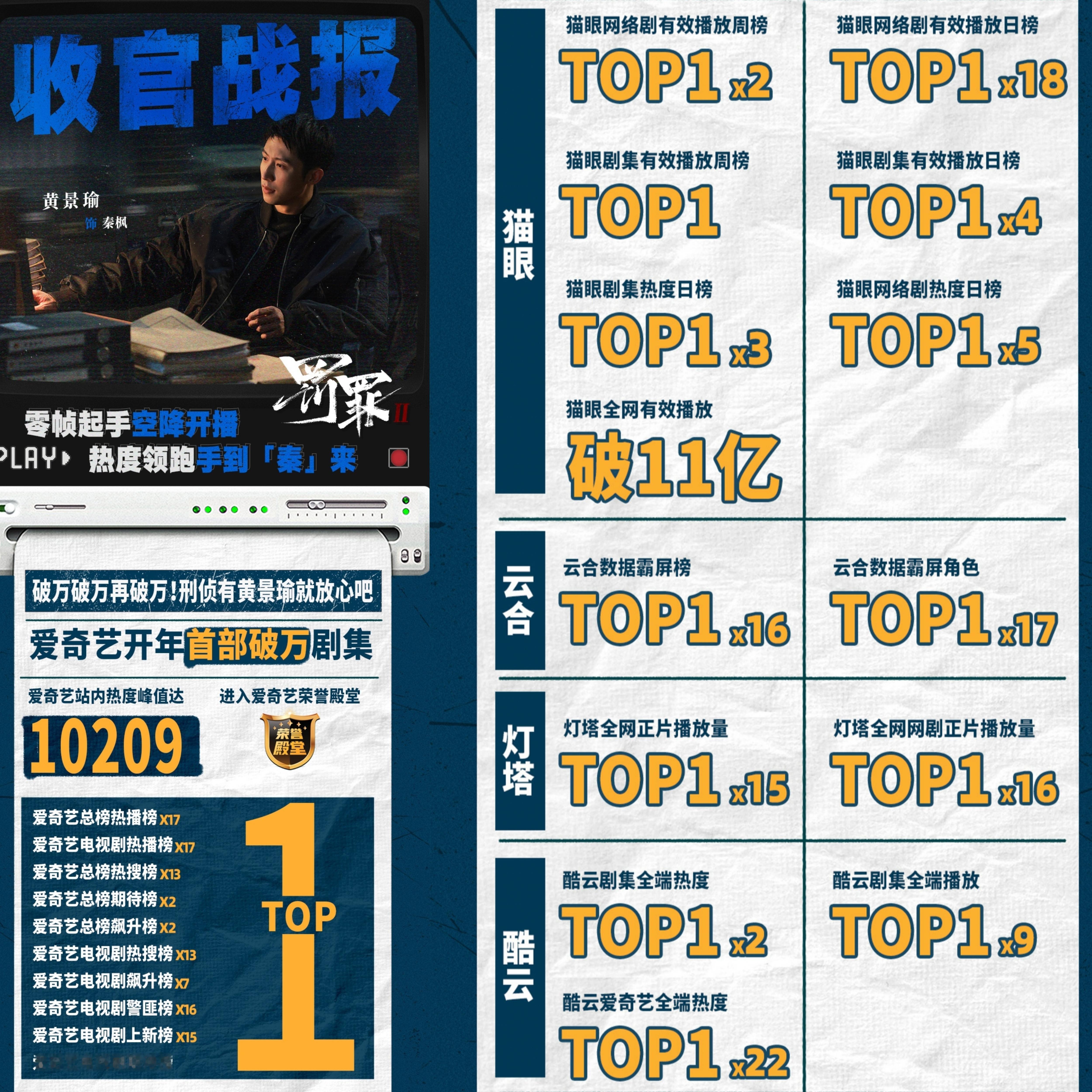 黄景瑜︱《罚罪2》︱收官战报『零』帧起手,空降开播全网领跑,破万破万再破万黄景瑜