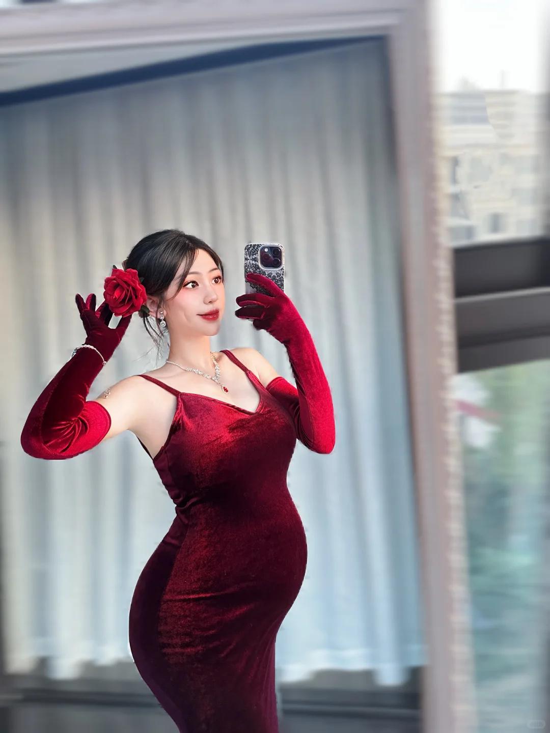 冬日的旗袍美人,美得清冷而高贵。旗袍裹上了温暖的丝绒与毛呢,色彩是深邃的墨绿、神