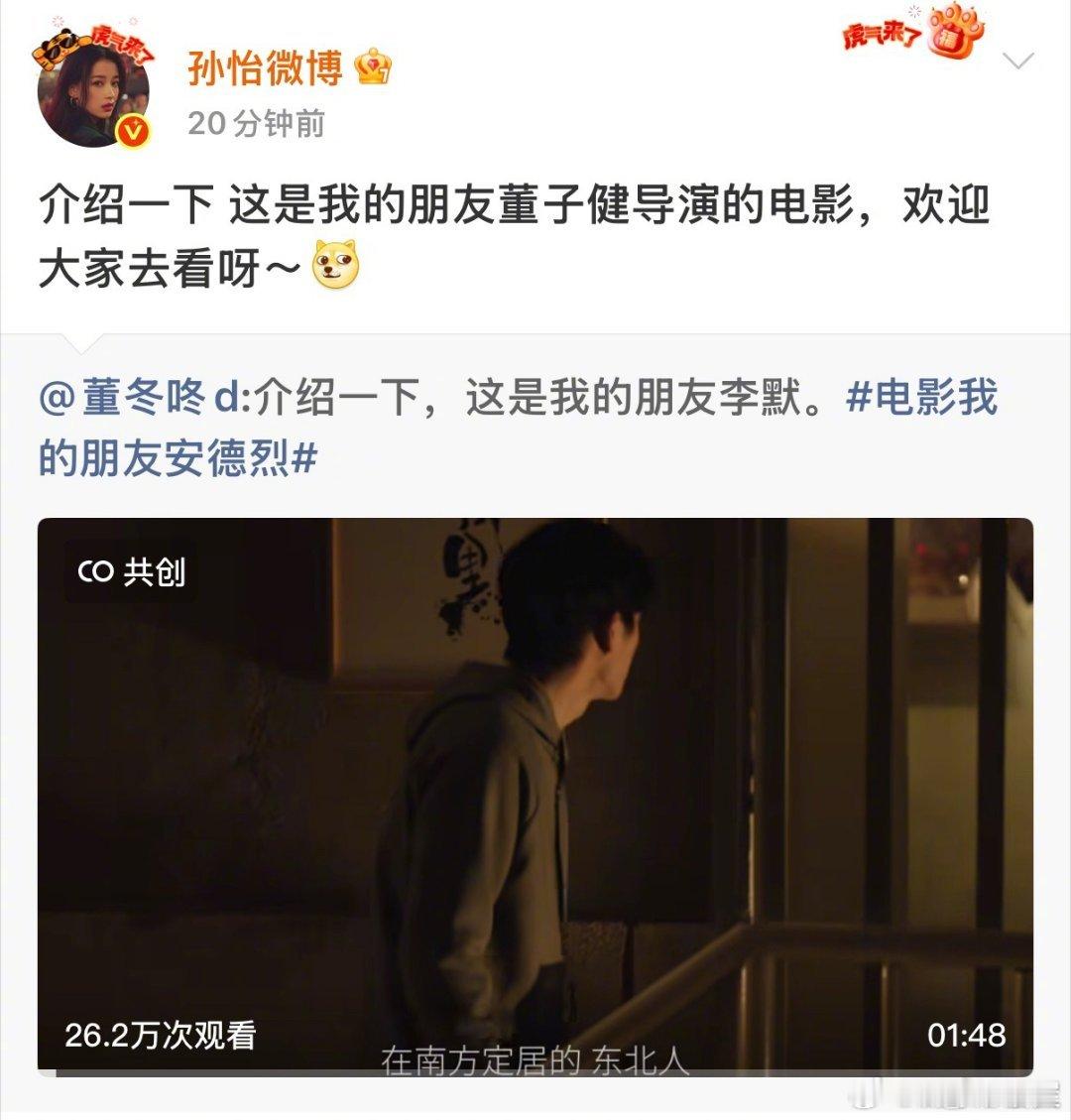 woc孙怡转发宣传董子健新电影《我的朋友安德烈》,还说这是“我的朋友”……老天奶这是真的前夫哥