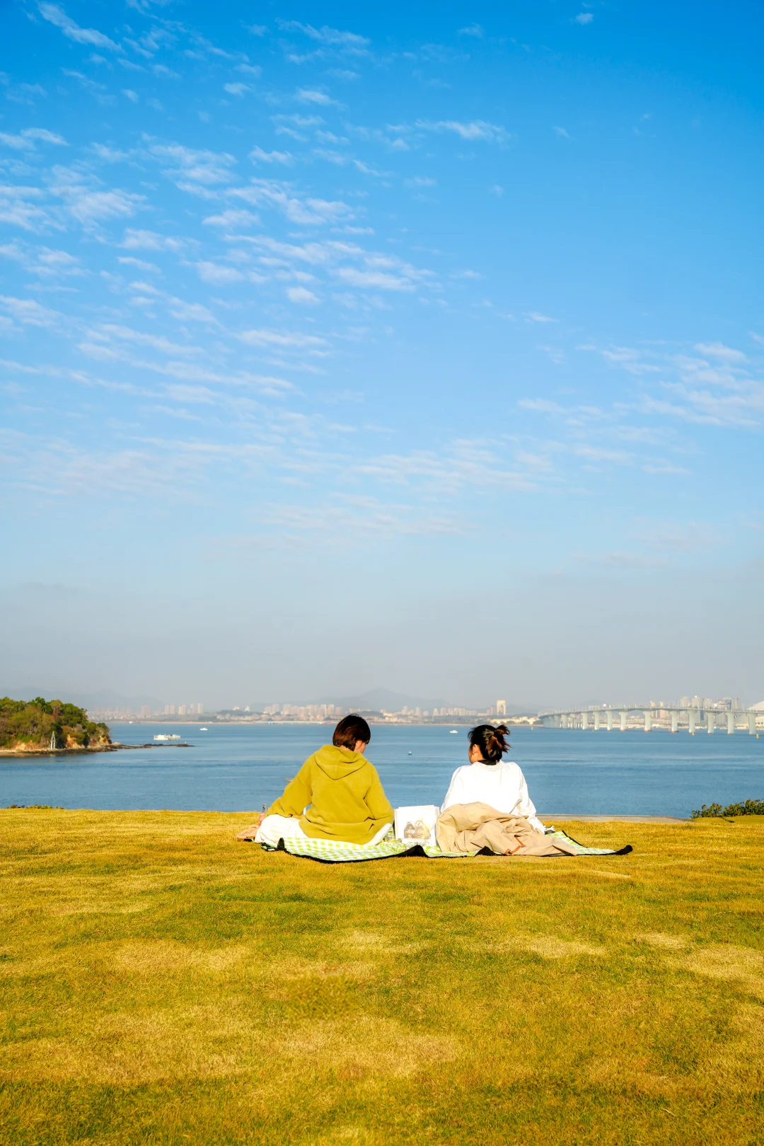 选一个晴天,从午后漫步到黄昏 当夕阳把整片海染成橘子汽水色 缓坡上草色温柔 眼前的一切就像节奏舒缓的电影 美的让人恍惚 . 🔖tips: 🔸公园不大但地势高,有大片草坪和中水池子,适合躺坪晒太阳 🔸中水池旁有一小片沙池,吊床、跷跷板等可以供大小朋友玩耍 🔸白房子拍飞机的热度已经过了,不再是人从众 🔸公园里设了多个玻璃观景台,新增的每把长椅都很出片 🔸自驾导航到「花屿悦海园」,公园底下有停车场;BRT「T4航站楼站」,下车后往出岛方向走300米即可到达