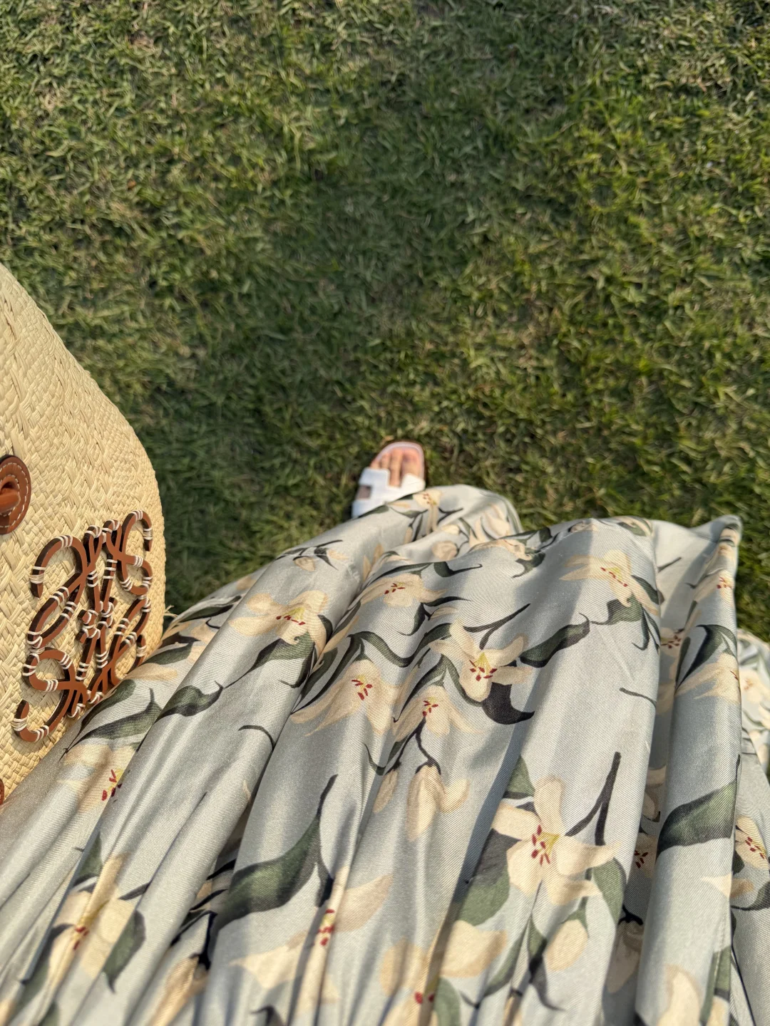 从去年夏天孕期就一直喜欢的真丝百合花裙子,终于有了用武之地!光泽感真是太美了