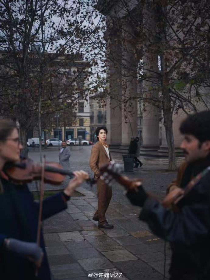 许魏洲第一章逃离家族的少爷 哇塞!许魏洲米兰时装周街拍,化身逃离家族少爷,边吃冰淇淋边回头,贵气感拉满!