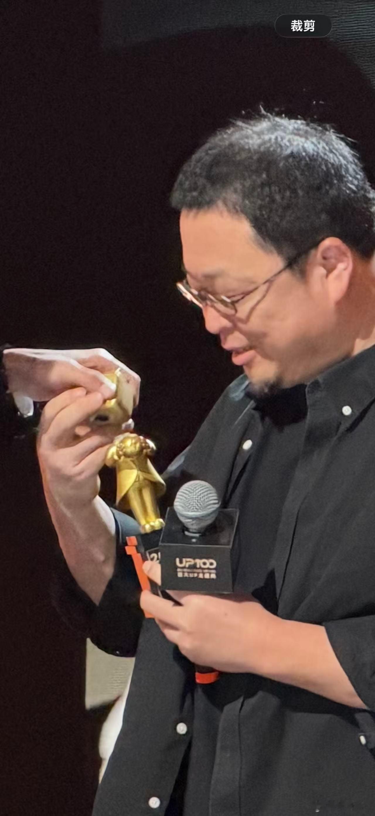 老罗领奖的时候头掉了hhh