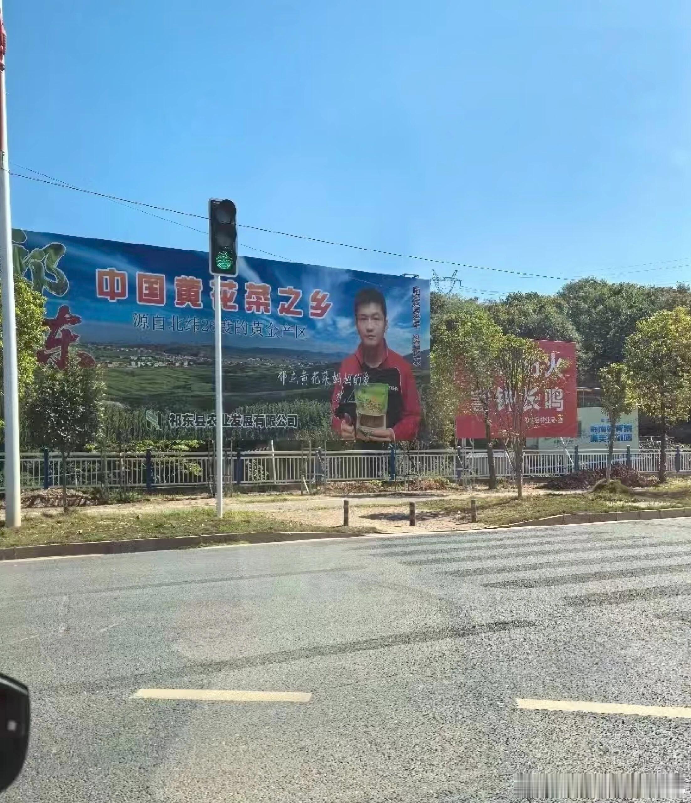樊振东的形象登上家乡黄花菜产业的巨型广告牌,“中国黄花菜之乡”的醒目标语旁,他手持特产的样子格外亮眼。