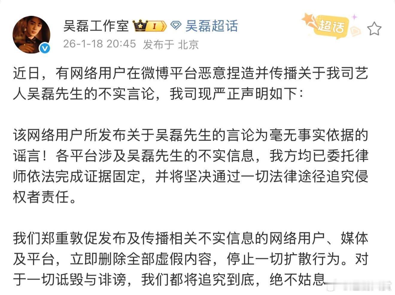 这个吴磊说的是哪个吴磊不知道白珊珊说的是哪个吴磊,不过已经有个吴磊发声明了哈!