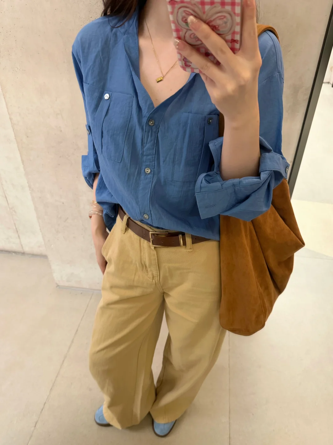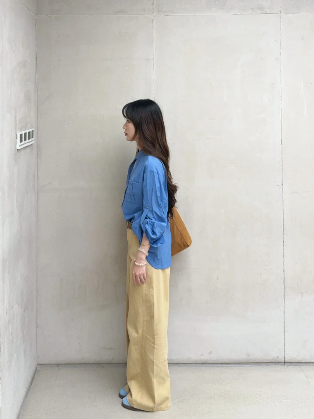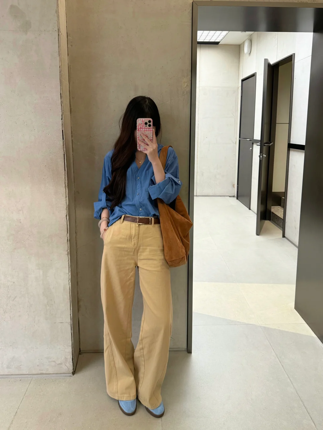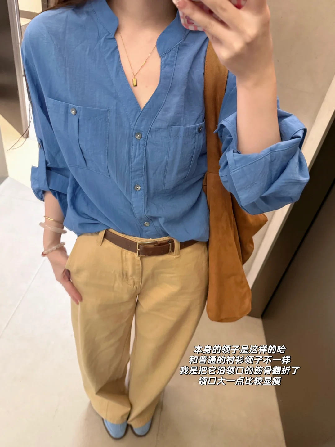 168/104左右 纯分享 理性种草 有人想看入秋穿搭 我赶紧来发一下 立秋第一套OOTD 很好看 我个人很爱~ 比较适合通勤 又很有氛围感 高智感直接拿捏 今年秋冬肯定很流行宝蓝色➕卡其色 非常好看的撞色搭配 日常又显白 蓝色衬衫➕棕色系的下装 miu感很重🫰🏻 谁能想到这套这么平价呢哈哈哈哈 其实看起来还蛮贵的