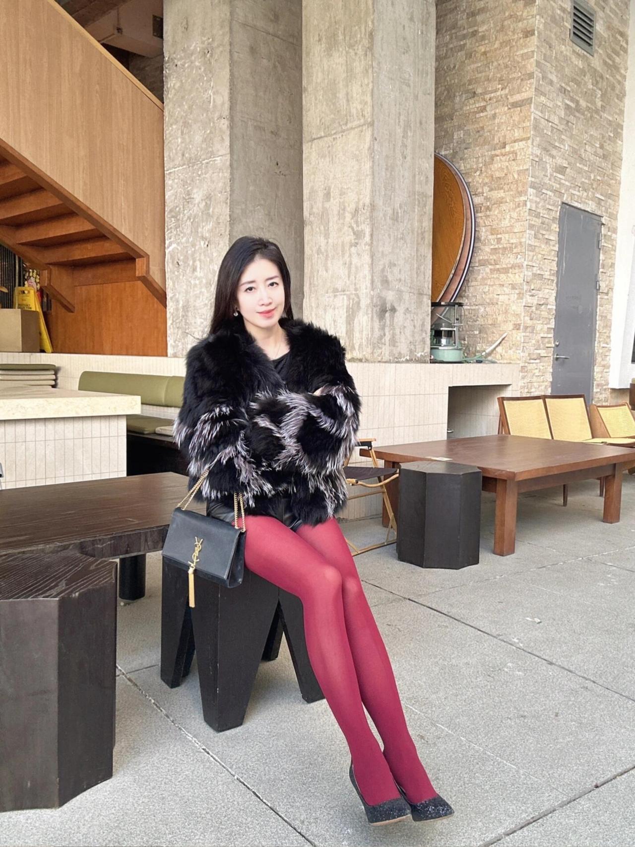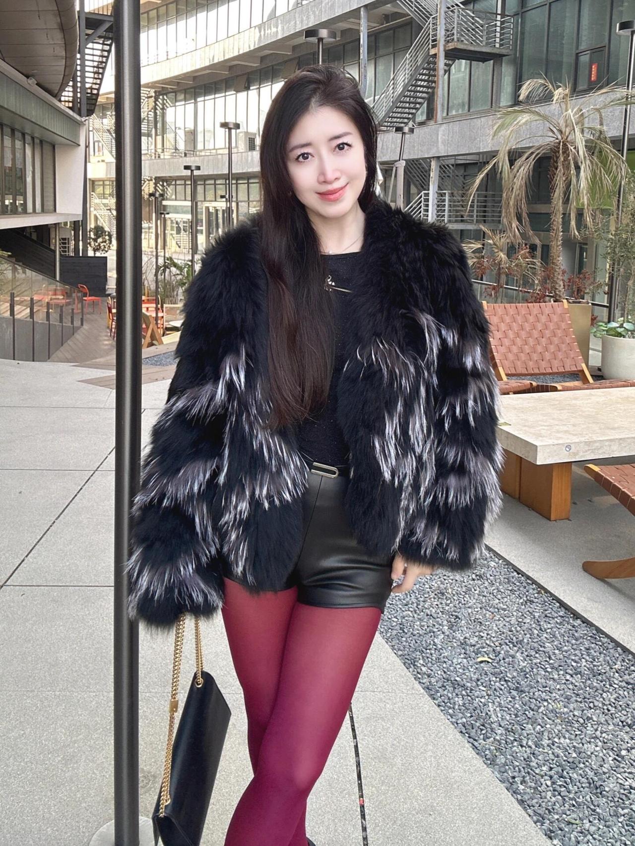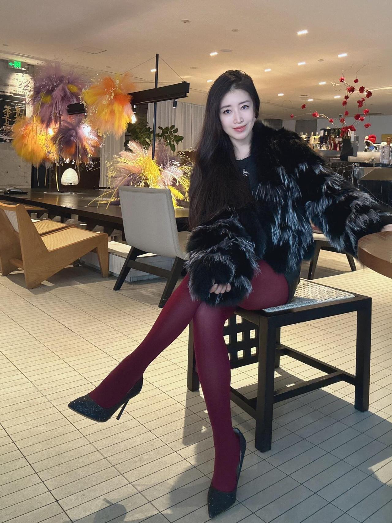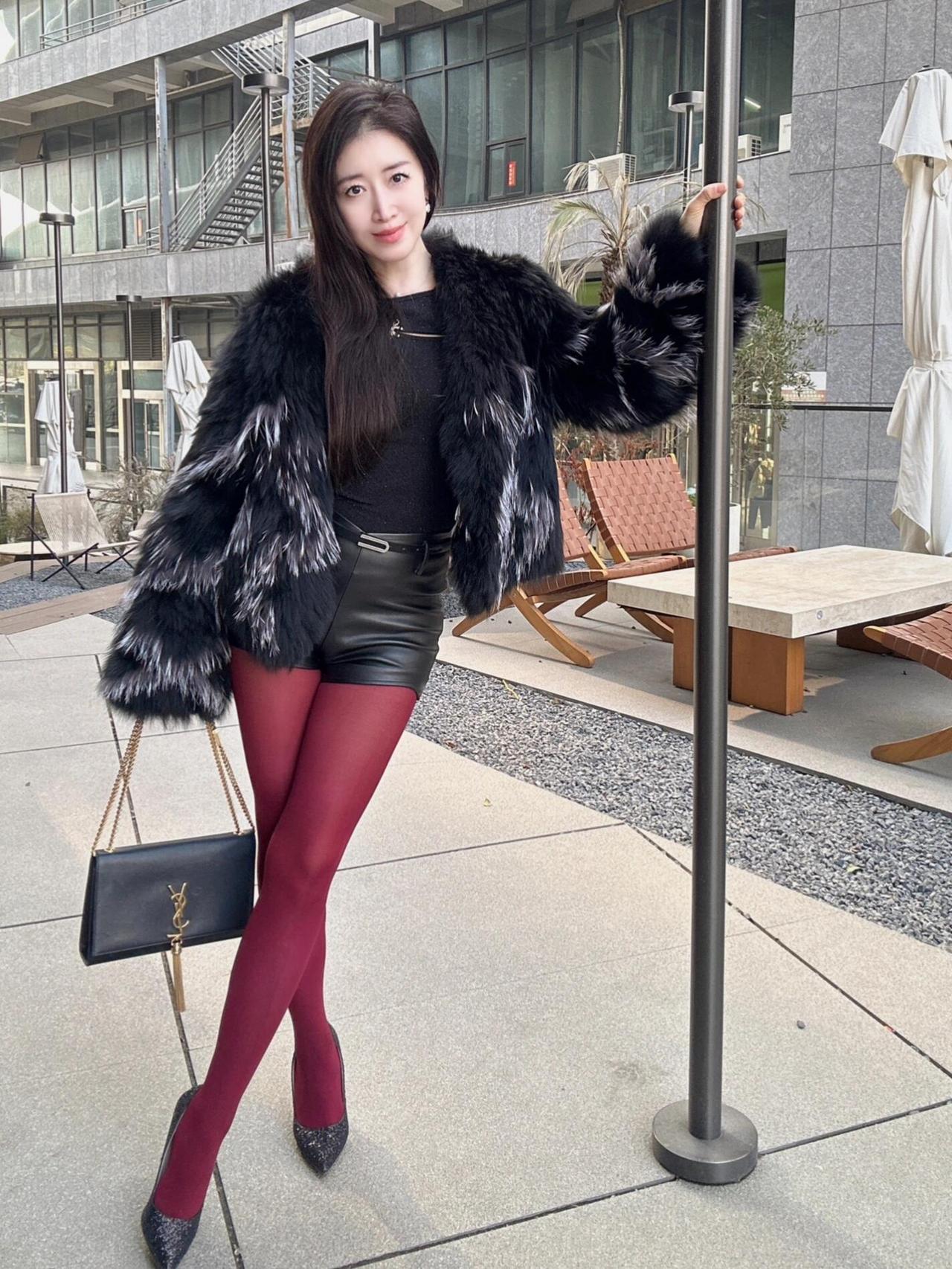 冬日暖阳下的时尚少女,黑色皮草外套搭配高筒靴,尽显都市魅力!🌞👗👢