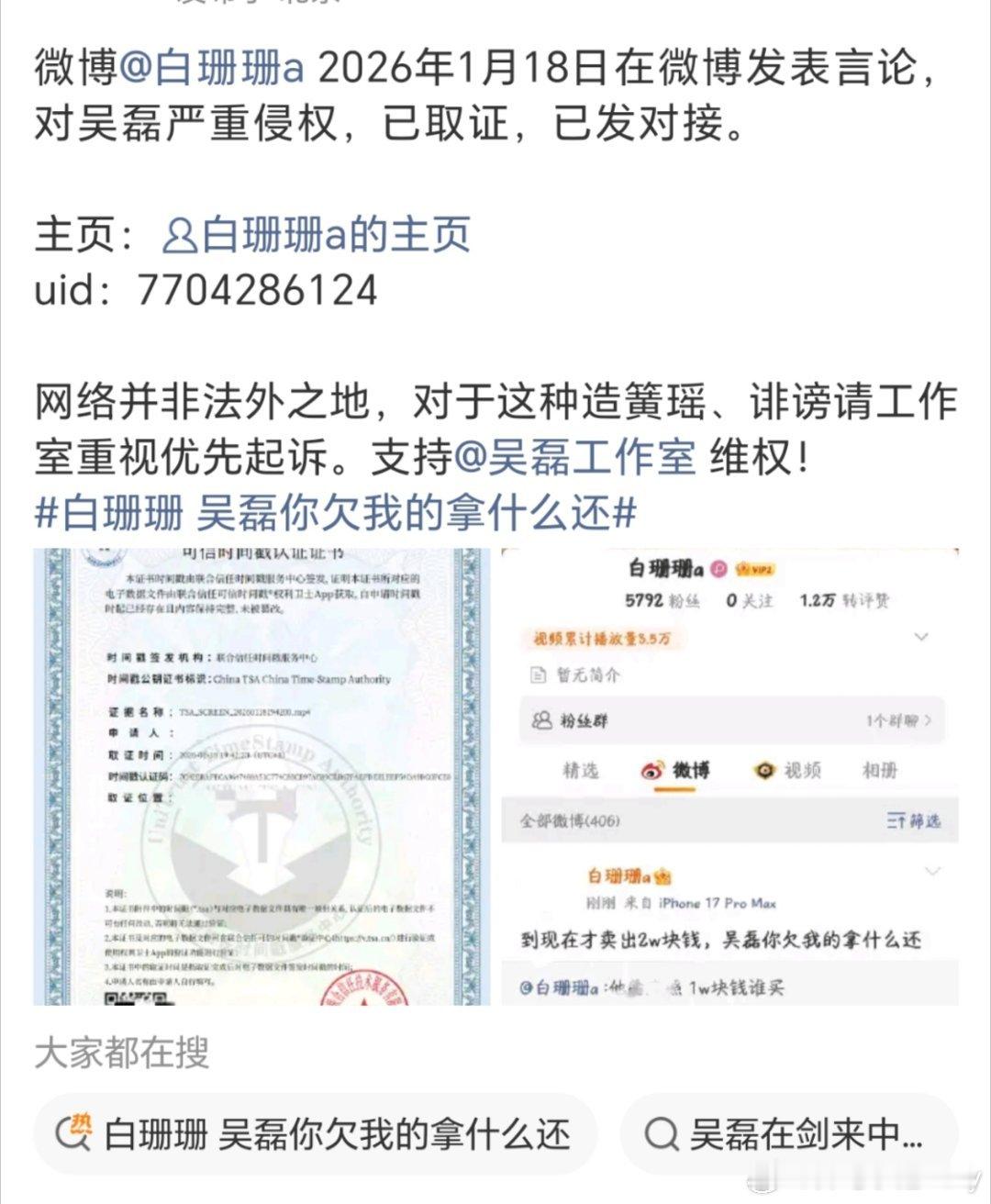 白珊珊 吴磊你欠我的拿什么还她没有直接艾特,吴磊工作室应该告不掉吧,毕竟同名同姓的人那么多!