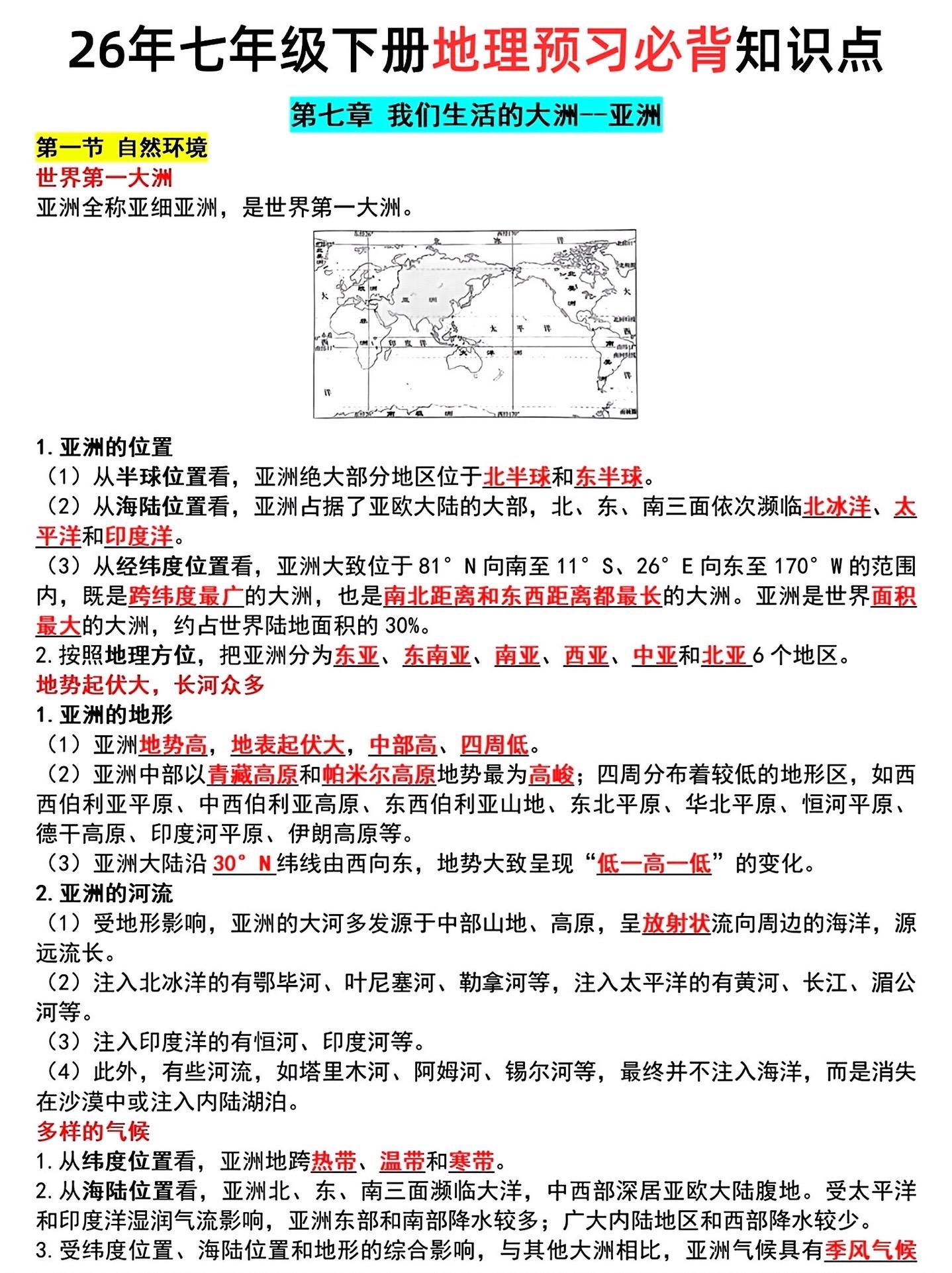 七年级上册期末总复习必背重点知识汇总。七年级上册各科必背重点,老师给大...