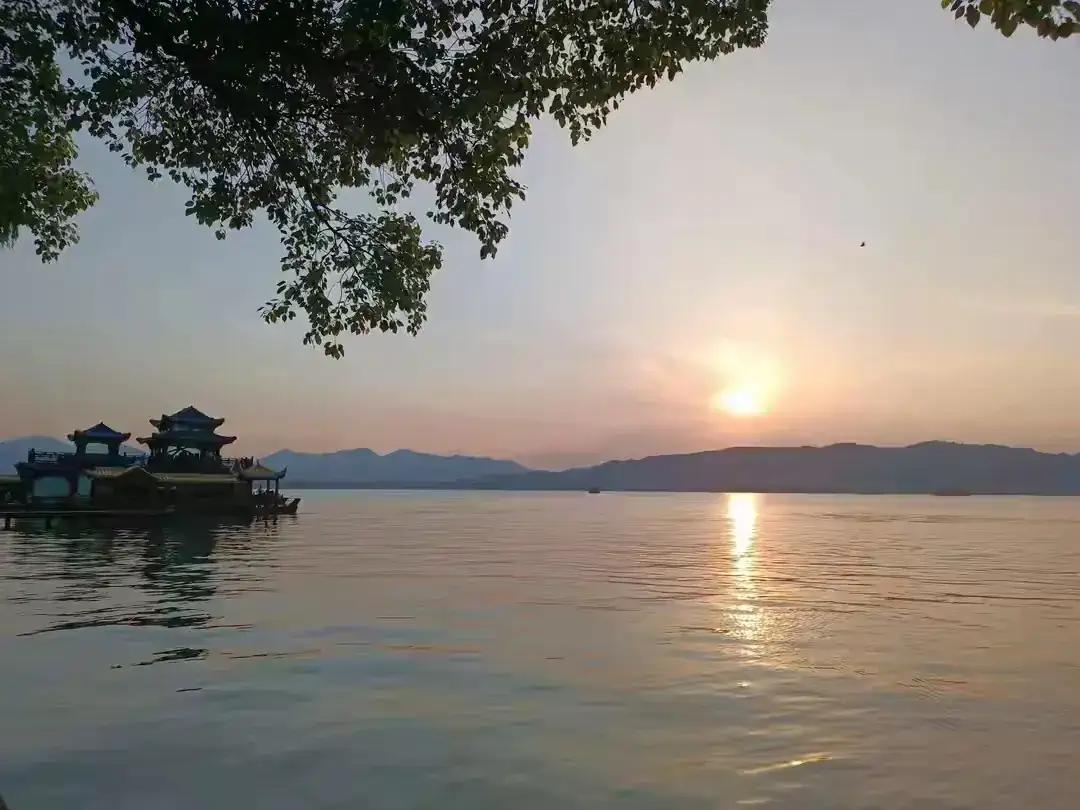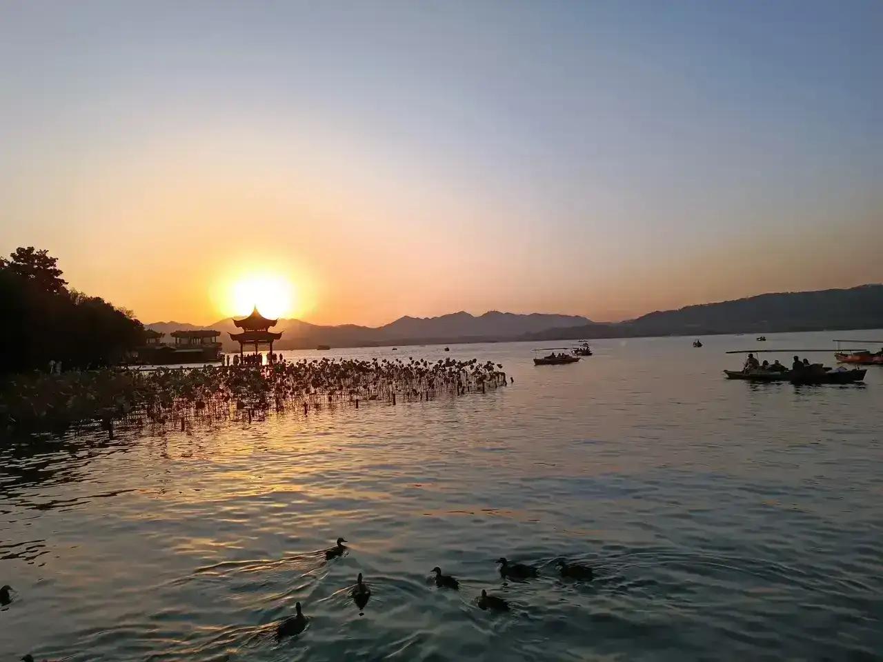 夕阳西下,静看那落日余晖照耀在西湖周边。就像我们在等一场岁月的流逝和等一场孤雁南飞。傍晚的落日教会我,豁达地面对生活的起起落落。夕阳落幕的那一刻让我知懂得,这不是结束,而是另一种开始。
