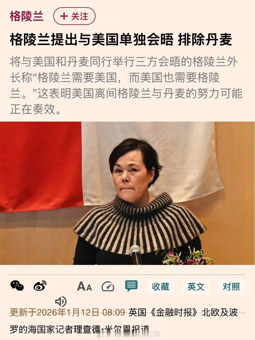 三国演义要变两方密谈?格陵兰外长维维安·莫茨费尔特公开提出,在没有丹麦外交大臣在场的情况下,格陵兰可以与美国单独进行会晤。她强调,格陵兰与丹麦虽有部分共同价值观与政策,但这不妨碍格陵兰以自身名义与其他国家单独接触。莫茨费尔特在上周五接受丹麦广播公司(DR)采访时表示:格陵兰在任何与美国的谈判中都应处于最前沿(“put itself at the forefront”)。 “格陵兰需要美国,而美国也需要格陵兰。这份责任必须得到严肃对待……我们直接与美国开展会晤,又有何不可?”外界猜测美国试图离间格陵兰与丹麦哥本哈根政府的关系,且该努力取得了初步成效。根据丹麦王国宪法,格陵兰岛外交与国防仍由哥本哈根掌控,格陵兰目前在法律上无法完全独立开展外交,但莫茨费尔特的公开提议仍被视为一个重要而敏感的政治信号。后续报道显示,三方会晤举行后,丹美之间仍存在“根本分歧”,仅同意成立高级别工作组继续讨论安全合作。这进一步凸显了格陵兰在美丹博弈中的关键角色。德国军事人员突然秘密撤离格陵兰岛