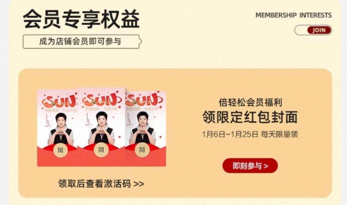 倍轻松全球品牌代言人孙颖莎 大家快来领莎莎的🧧封面过程:🍑旗舰店-会员页面-找到图3点击参与活动-复制兑换码到wx🧧领封面-点击兑换输入兑换码就可以