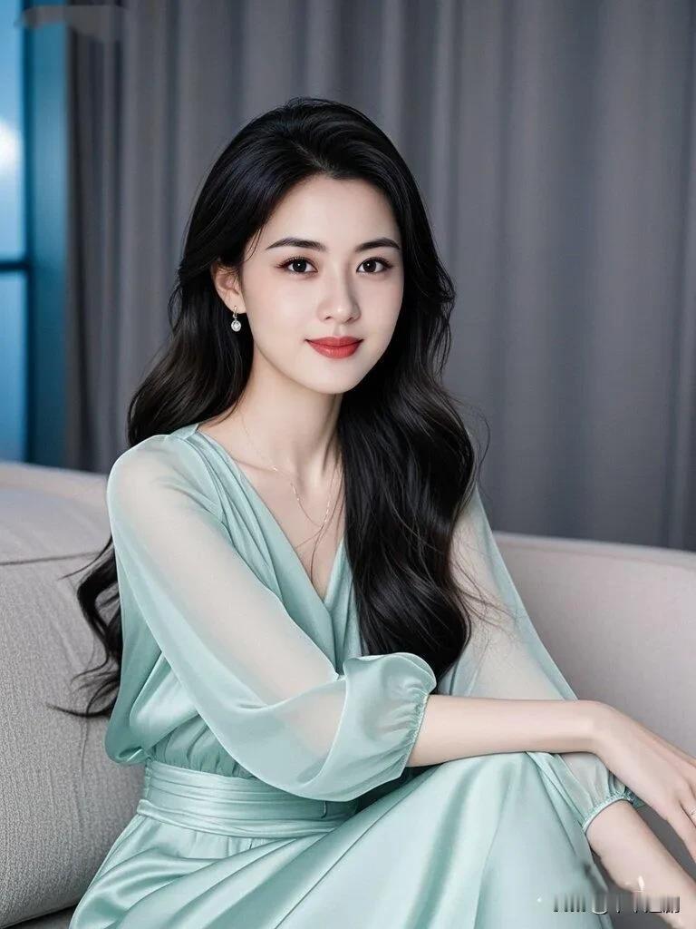 🌿 薄荷绿纱裙裹着松弛氛围感,V领与泡泡袖添了几分温柔,在浅灰沙发上,自成一抹清润的春日风景。 中年女魅力穿搭 淡雅绿连衣裙